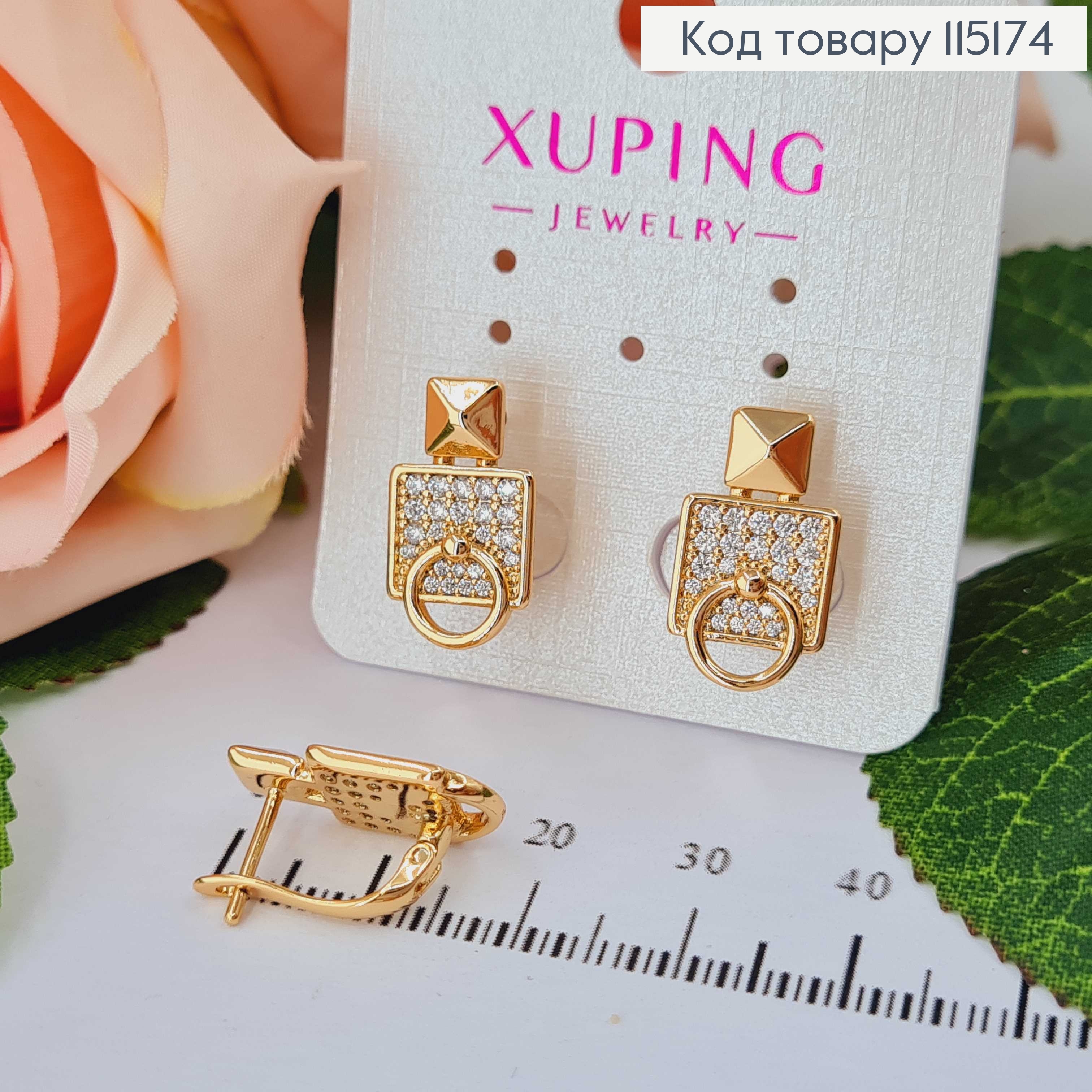 Серьги с квадратным блестящим камнем, 1,9см, английская застежка, Xuping 18K 110257 фото