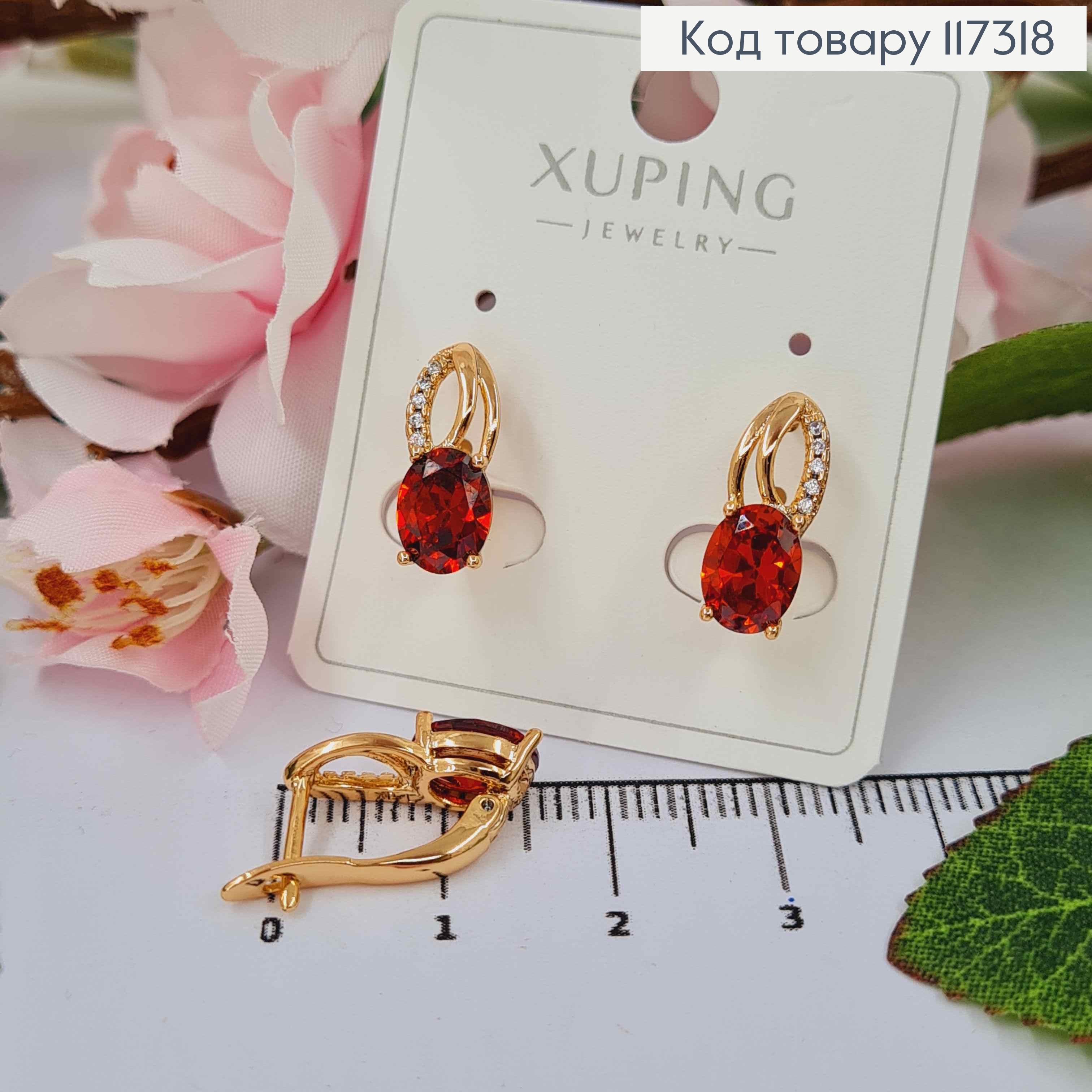 Серьги "Лепесток" с камешками и большим Красным камешком 1,7см, англ застежка, Xuping 18К