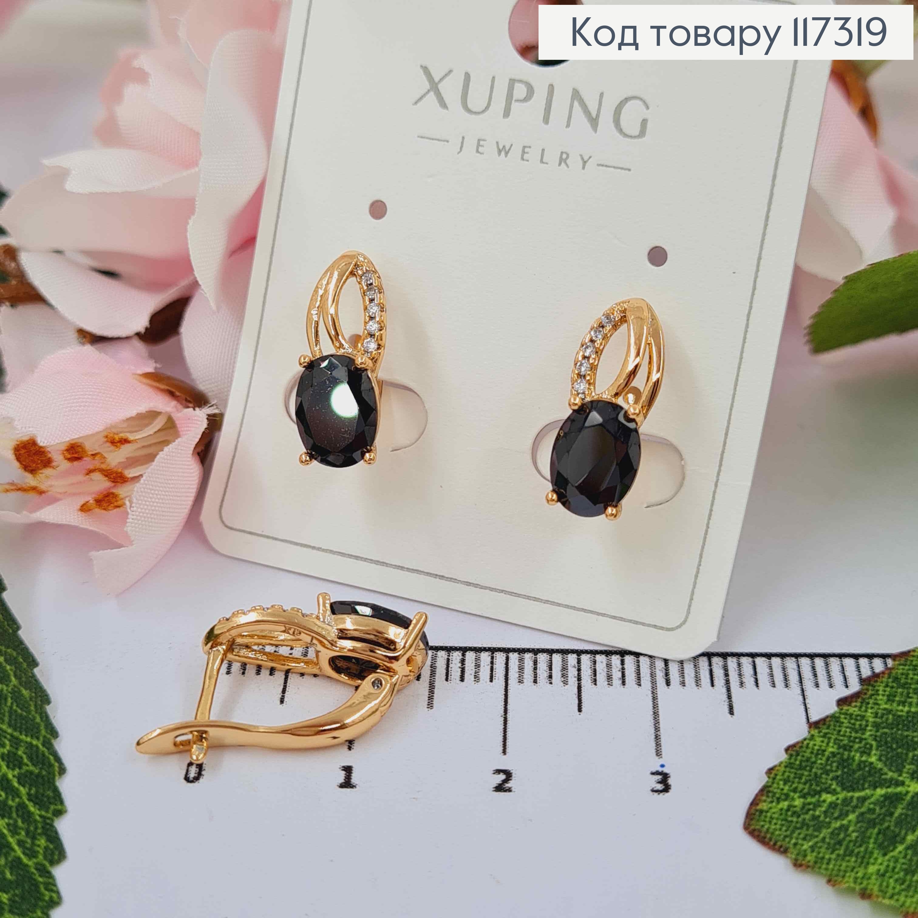 Серьги "Лепесток" с камешками и большим Чёрным камешком 1,7см, англ застежка, Xuping 18К