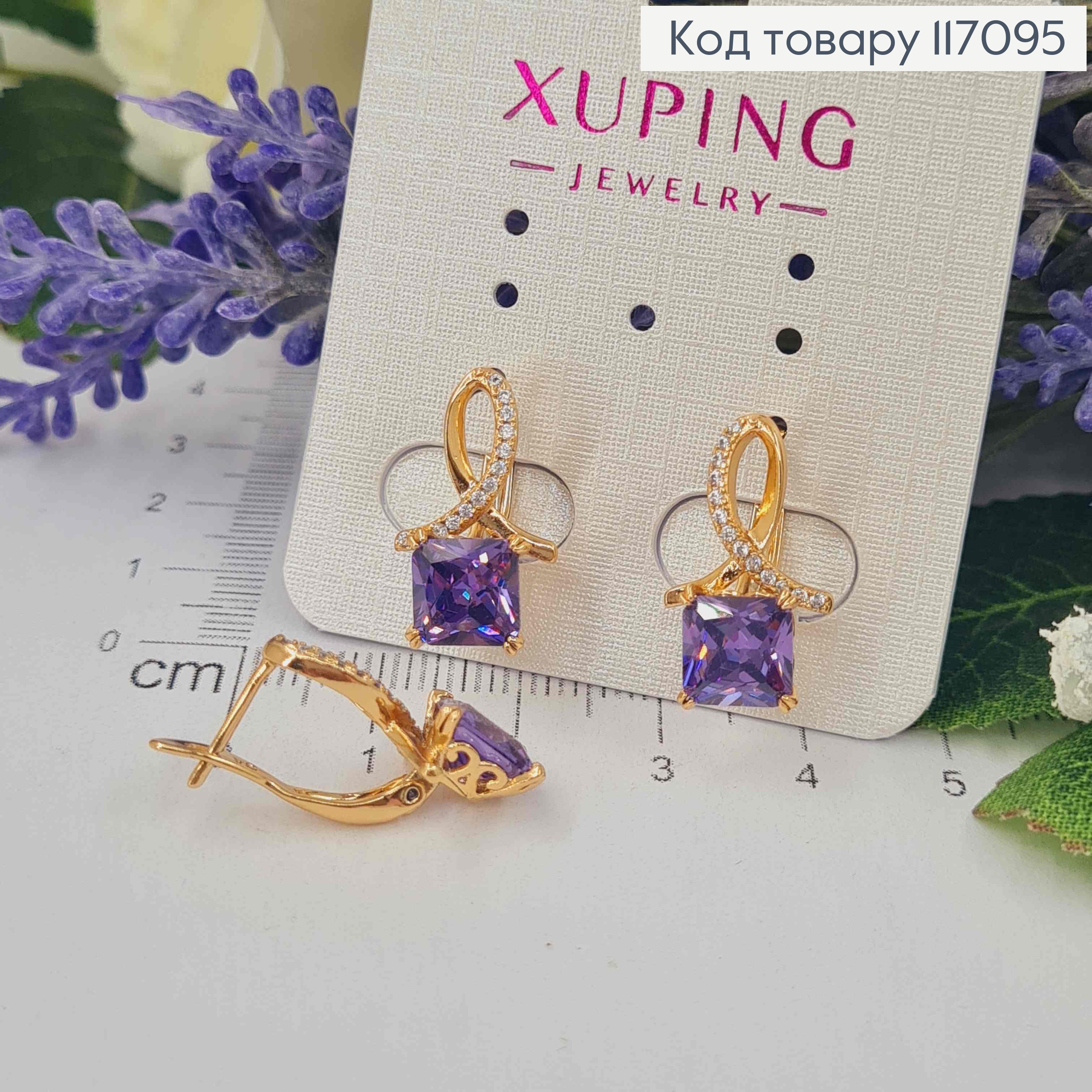 Серьги "Петелька" в камешках, с Фиолетовым камешком, 1,9см, Xuping 18K