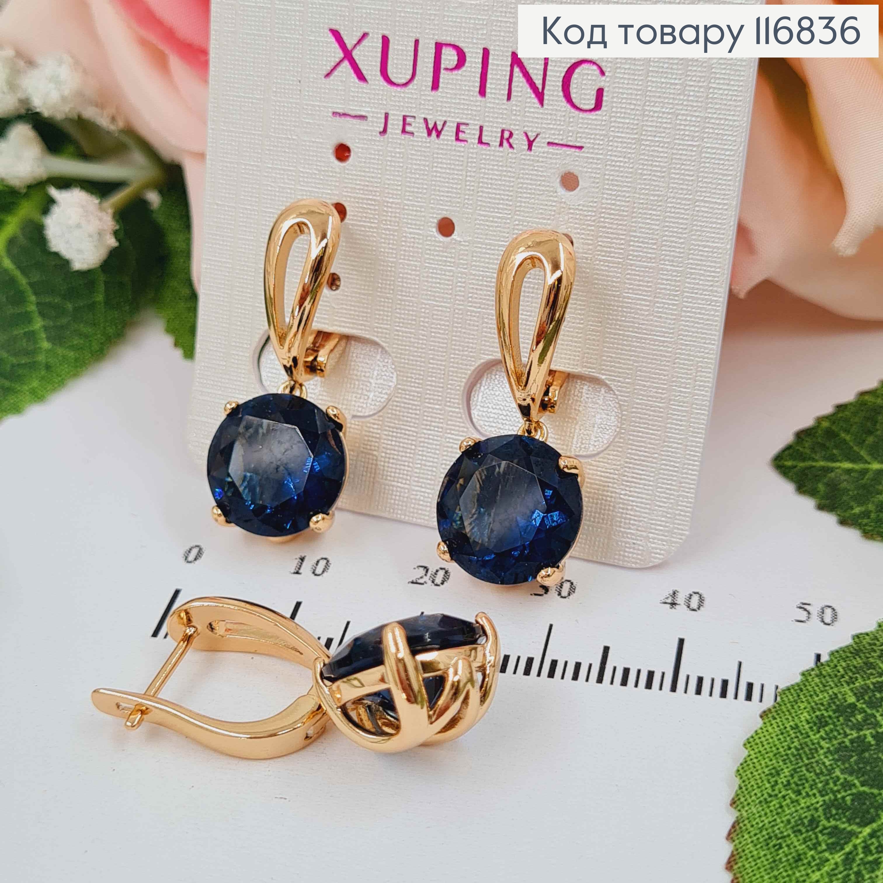 Серьги петельки с большим синим камешком, 3см, англ. зам. Xuping 18K