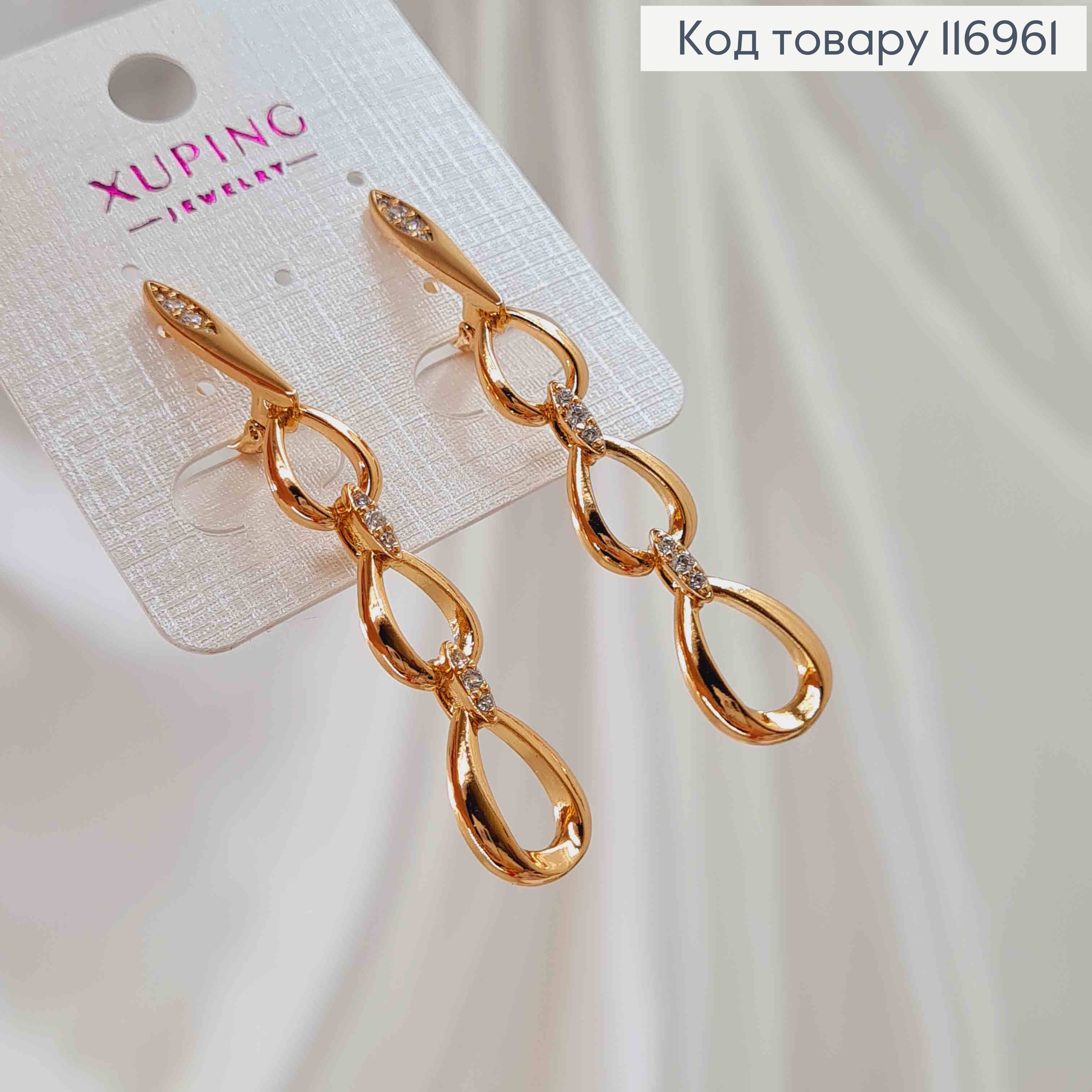 Серьги кольца с подвесными цепочками, размер 1,1+8см, Xuping 18K 110249 фото