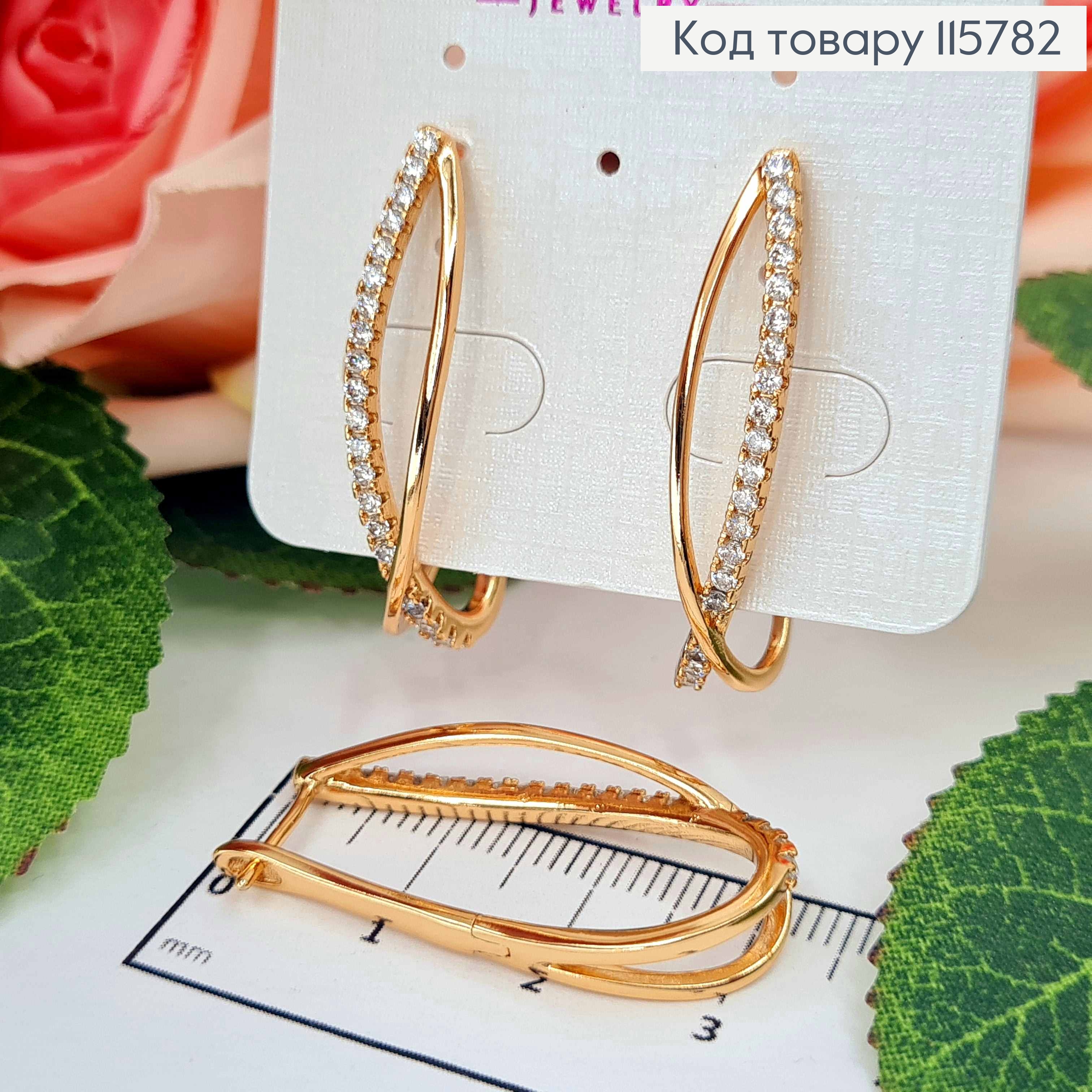 Серьги полукольца, с переплетами и строчкой камешков, 3см, англ. зам. Xuping 18K
