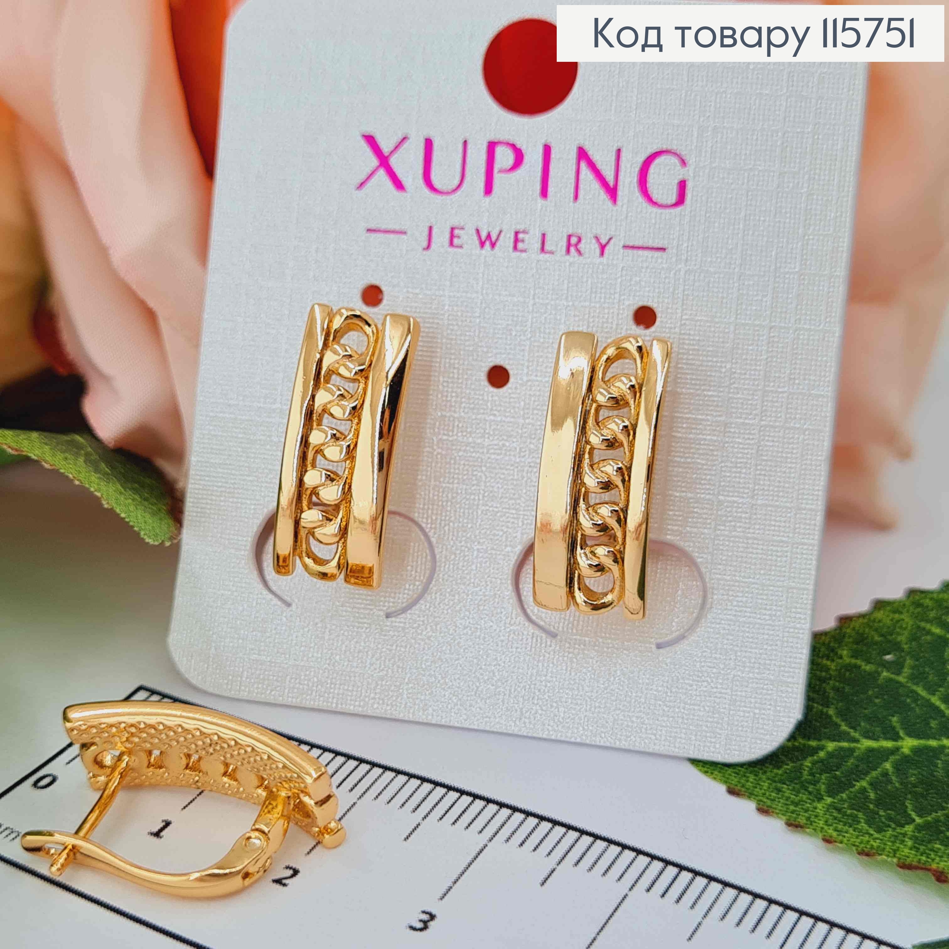 Серьги кольца с подвесными цепочками, размер 1,1+8см, Xuping 18K 110249 фото