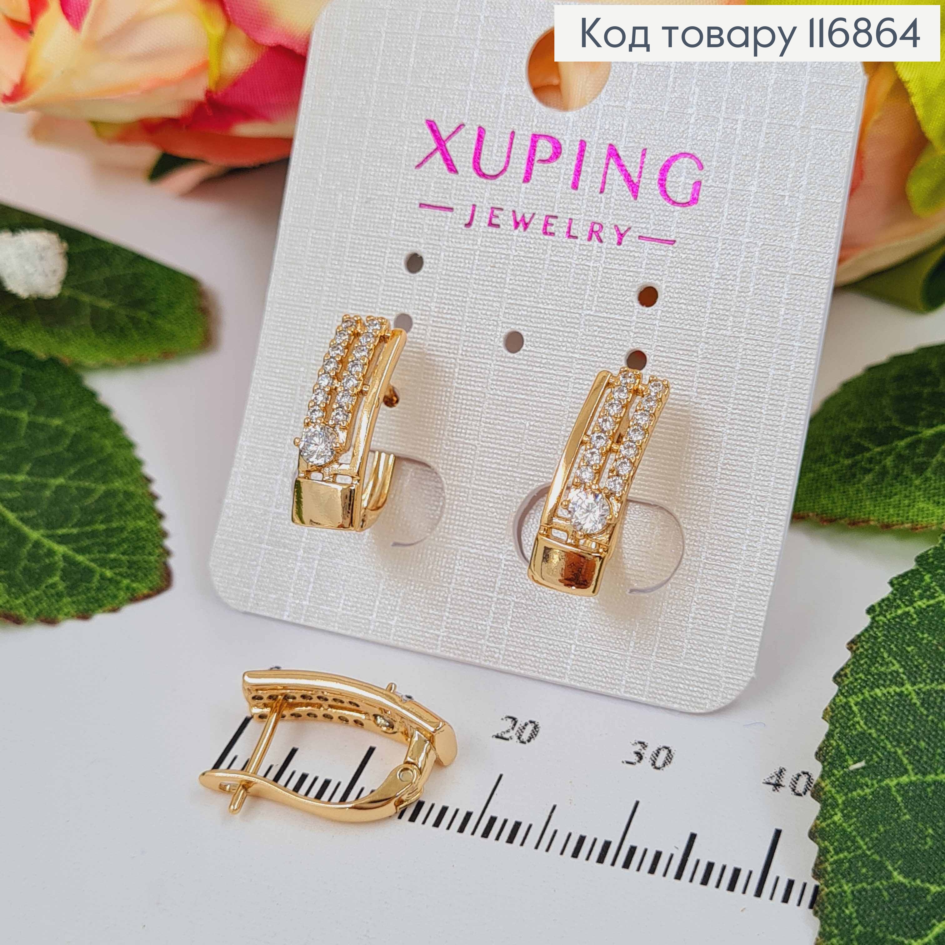 Серьги с Блестящим камнем, 1,9см, английская застежка, Xuping 18K 110256 фото