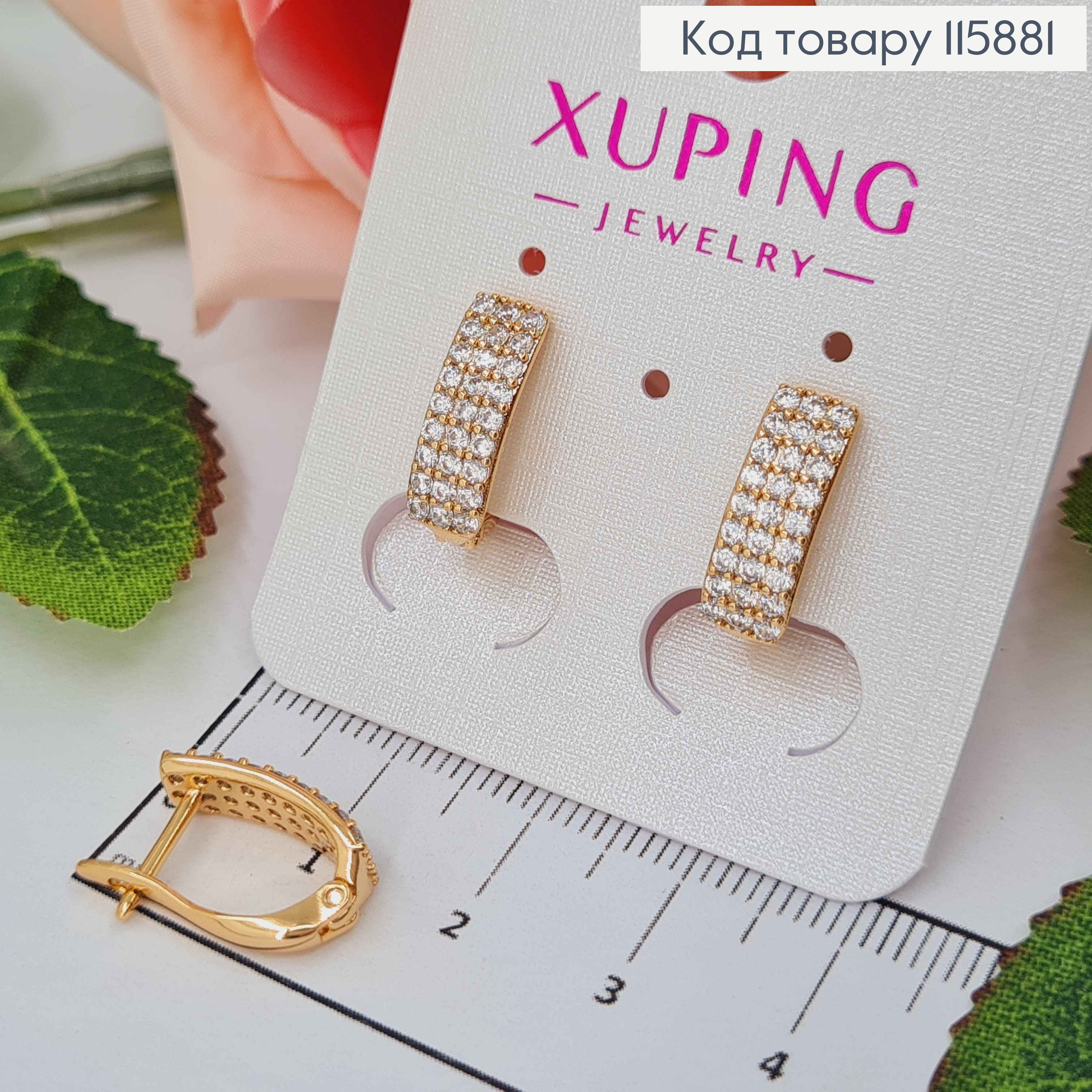 Серьги, Пластинки, с тремя рядами камешков, 1,5см, англ.зам. Xuping 18K