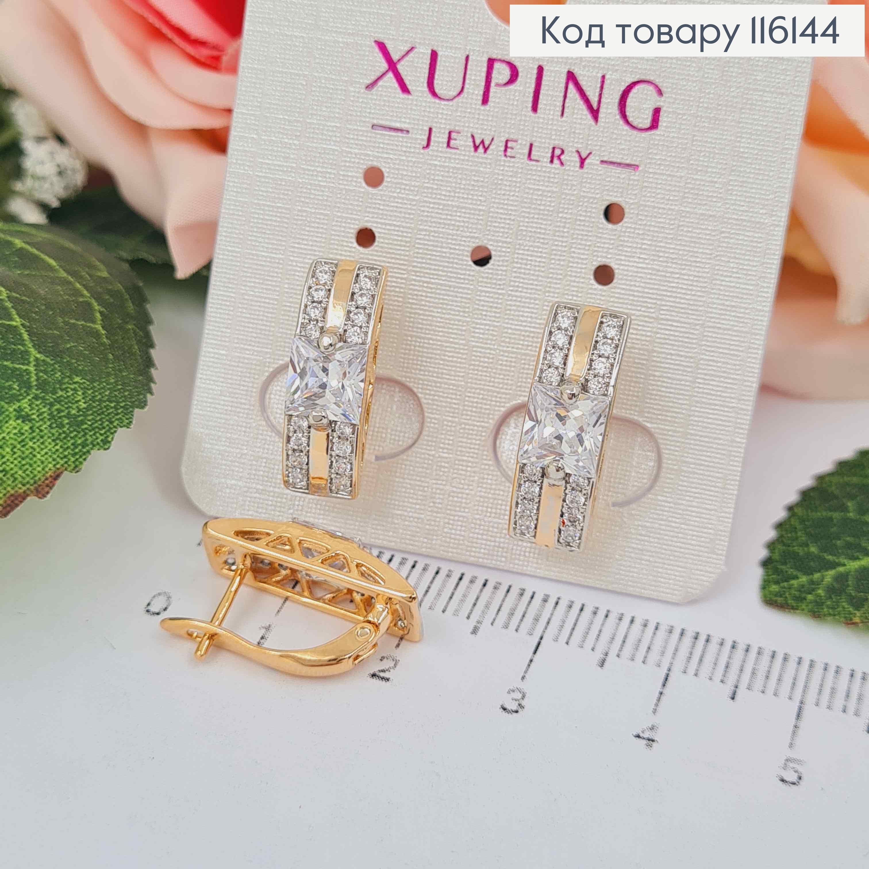 Серьги с квадратным блестящим камнем, 1,9см, английская застежка, Xuping 18K 110257 фото