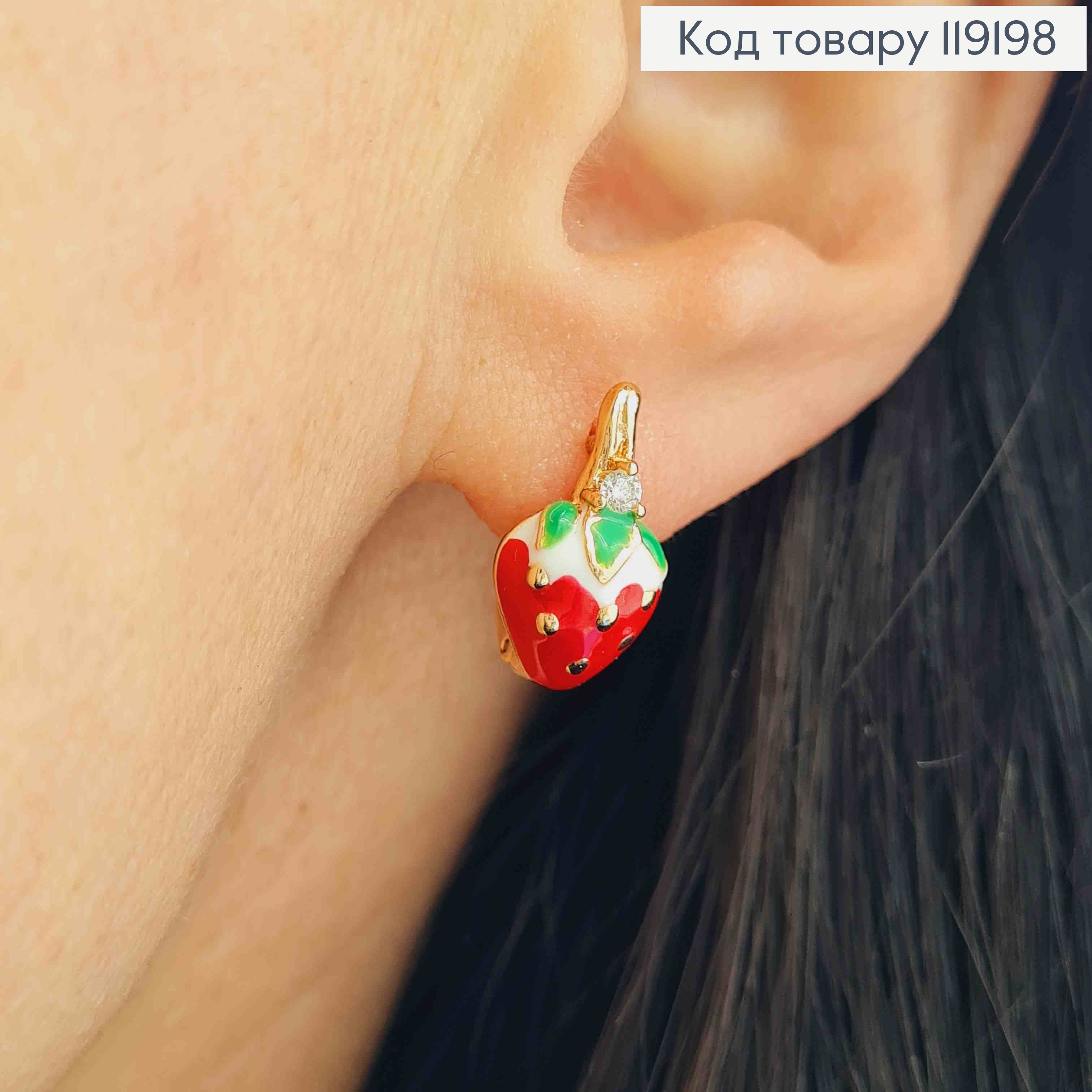 Серьги "Клубничка" с Бело-Красной эмалью и Камешком, 1,5см, английская застежка, Xuping 18K