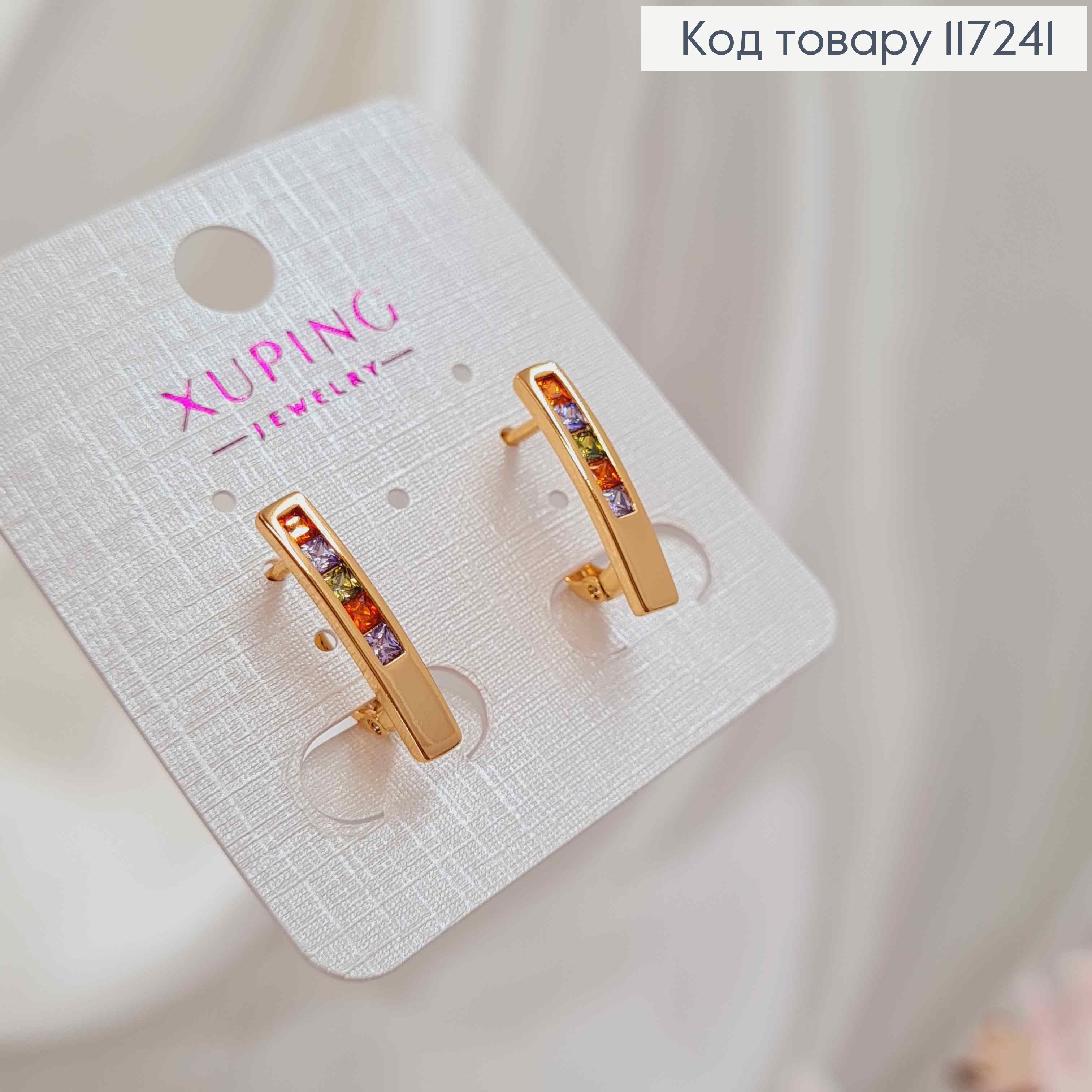 Серьги Прямые с разноцветными камешками, высота 1,9см, английская застежка XUPING 18K