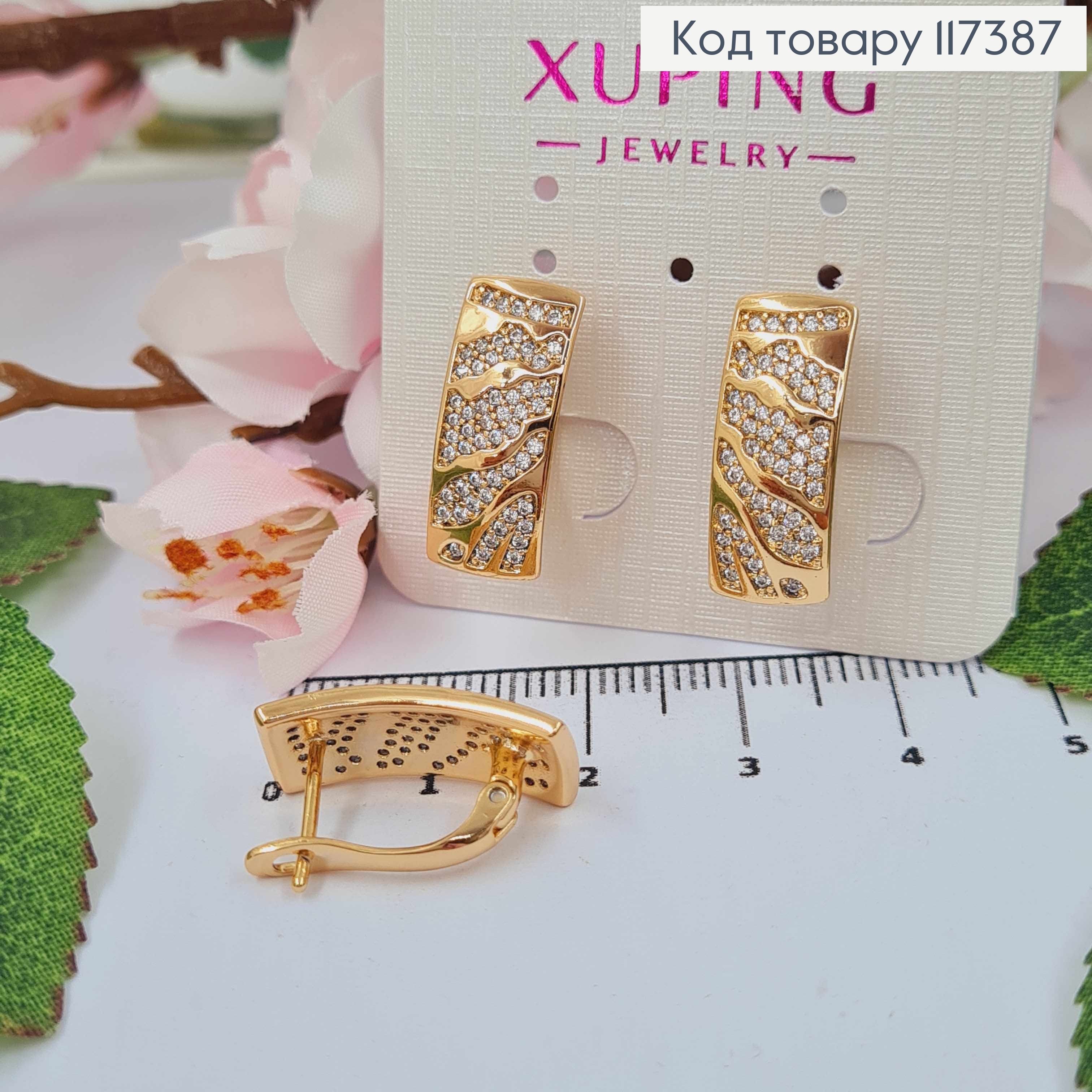 Серьги Прямоугольная пластина украшена блестящими камешками, 1,9*0,8см, англ застежка, XUPING 18K