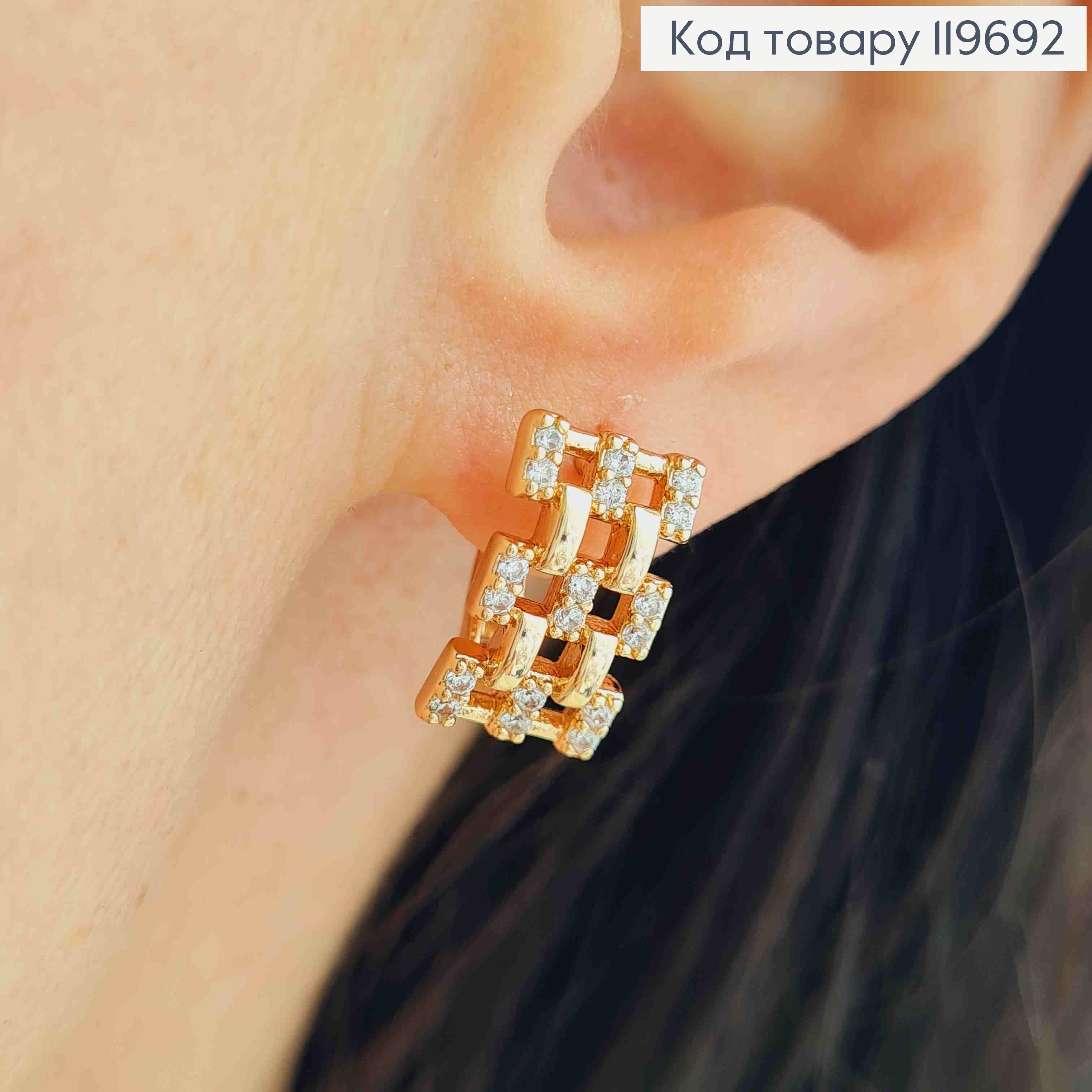 Серьги прямоугольные Фактурные, длина 1,7см, английская застежка, Xuping 18К 110203 фото