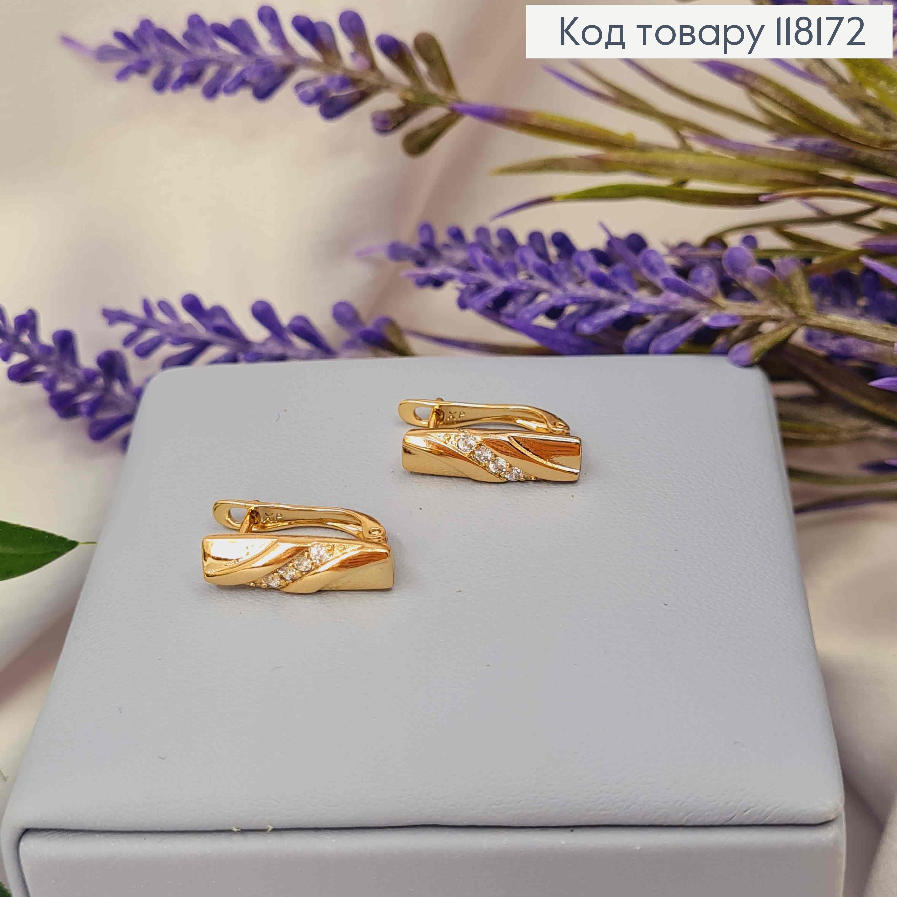 Серьги прямоугольные Фактурные, длина 1,7см, английская застежка, Xuping 18К 110203 фото
