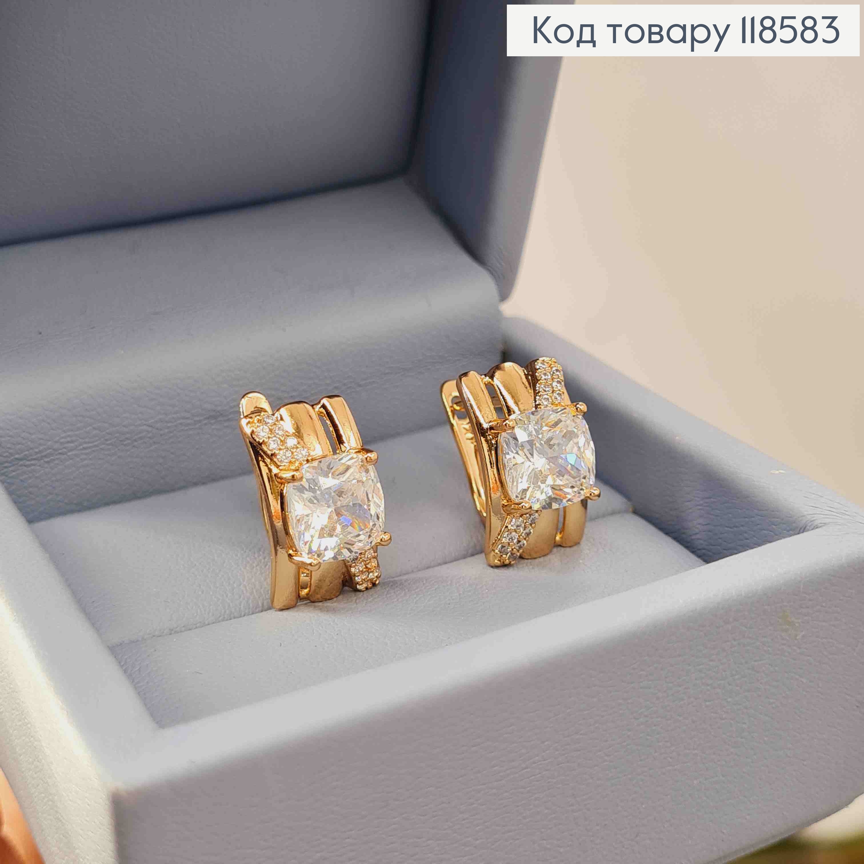 Серьги "Прямоугольные" с Большим Блестящим камнем, 1,6см, английская застежка, Xuping 18К