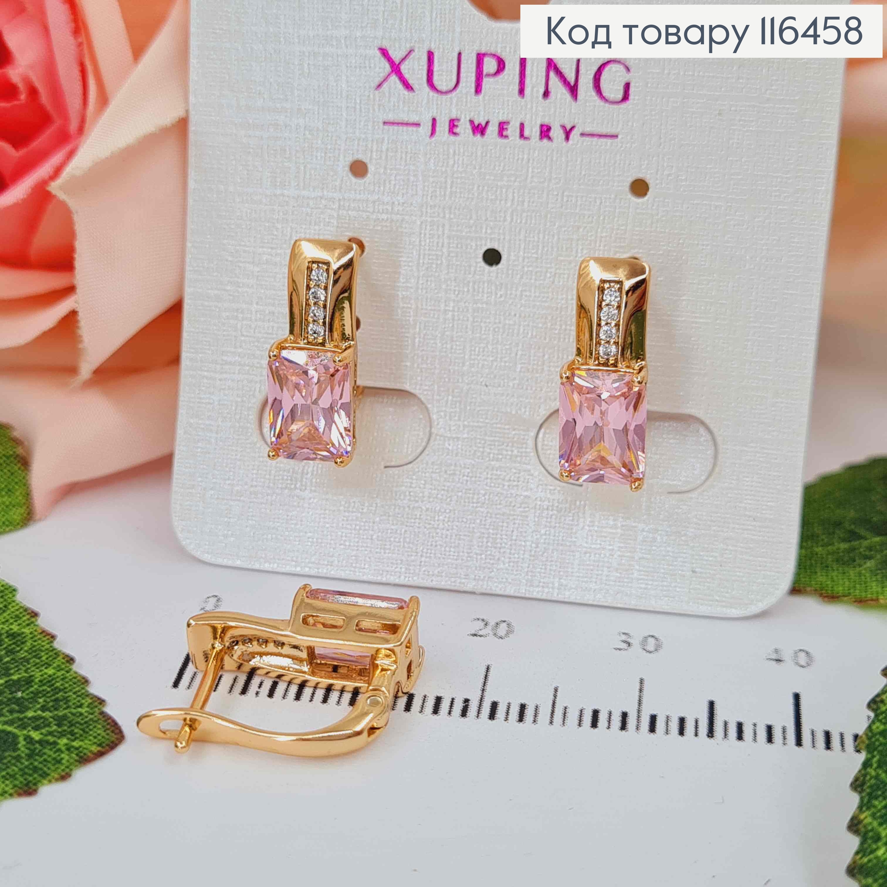 Серьги Пряжка с розовым большим камешком, 2см, англ. зам. Xuping 18К