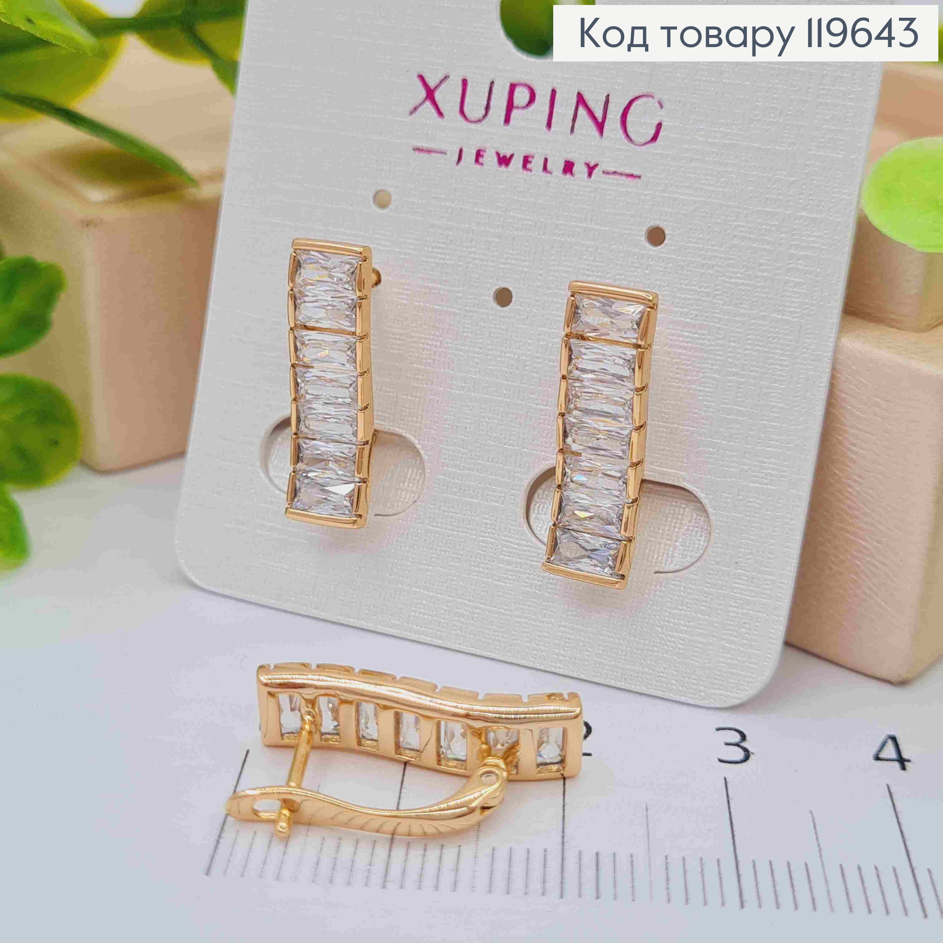 Серьги украшены Блестящими камешками в один ряд, дл. 2см, английская застежка, XUPING 18K