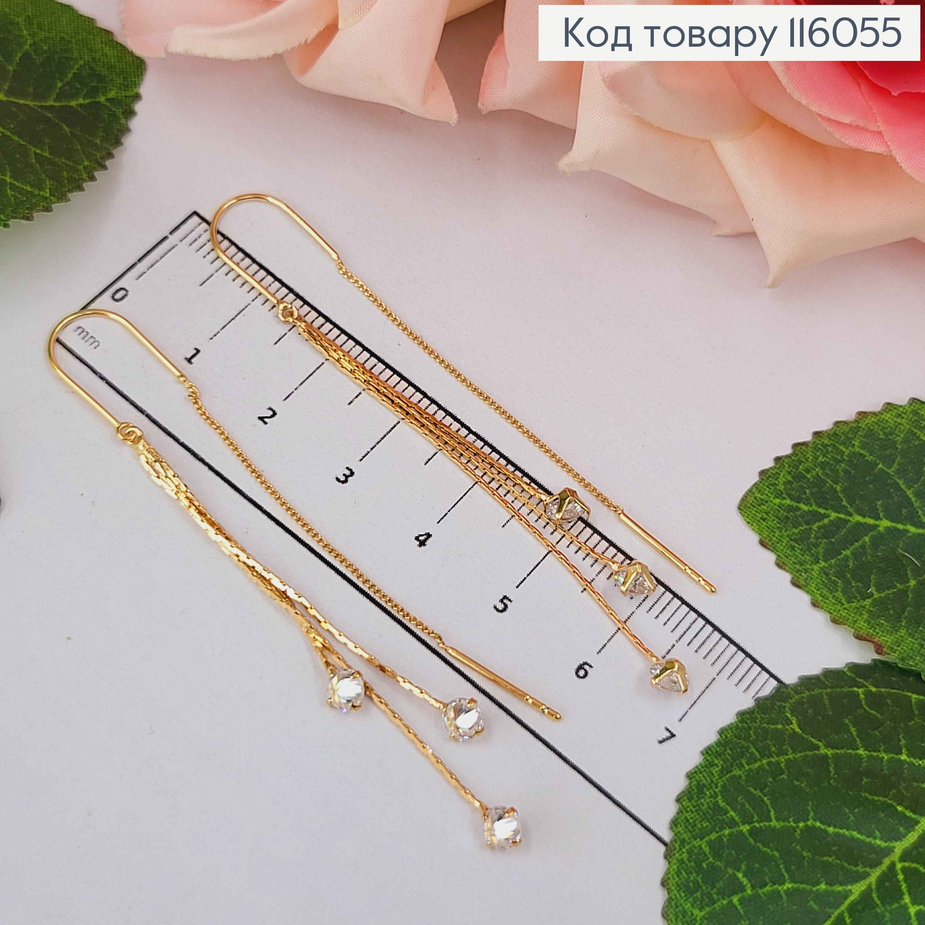 Серьги Протяжки, три ниточки с камешками, 5,5см, Xuping 18K