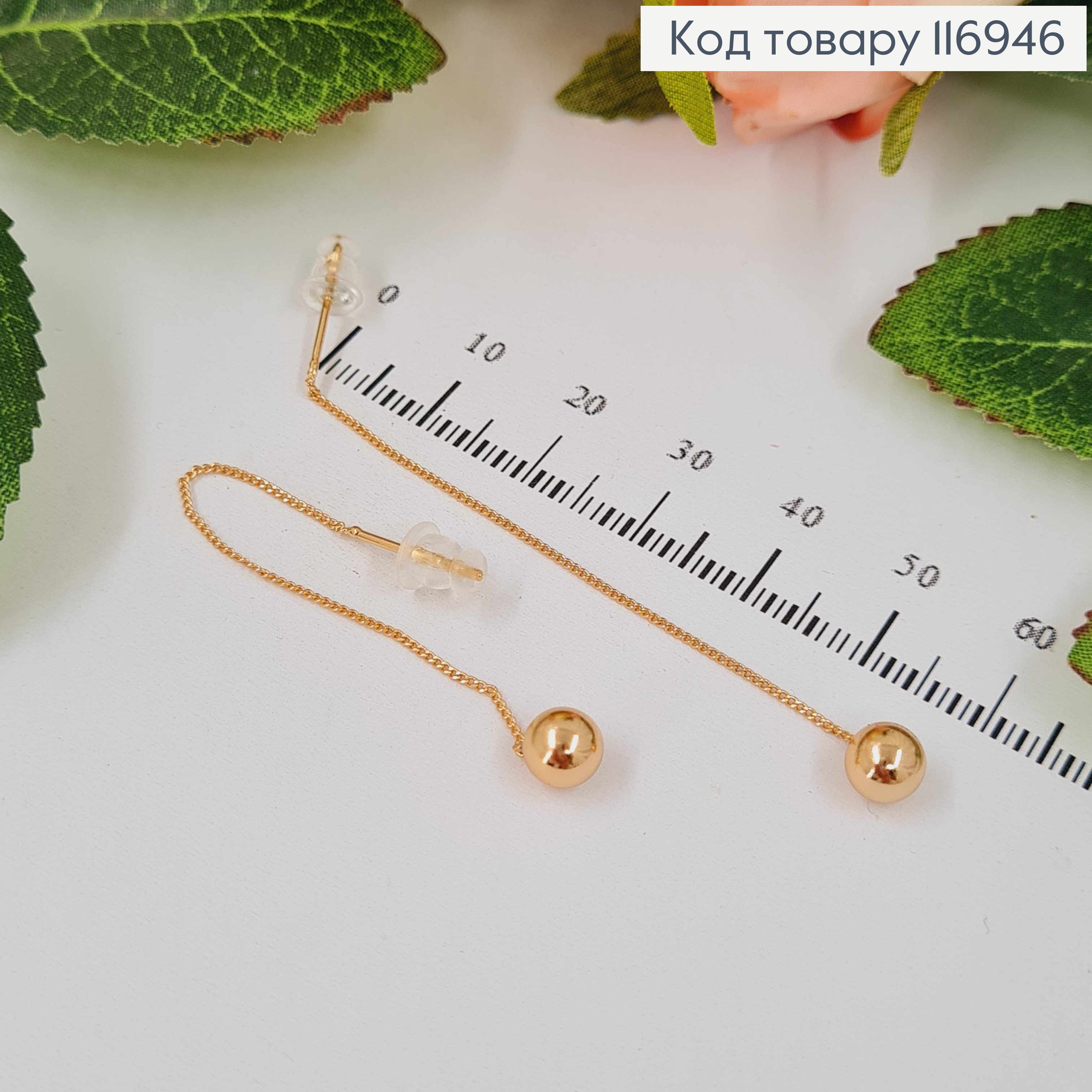 Серьги кольца с шариками на подвесных цепочках, размер 1,1+7см, Xuping 18K 110248 фото