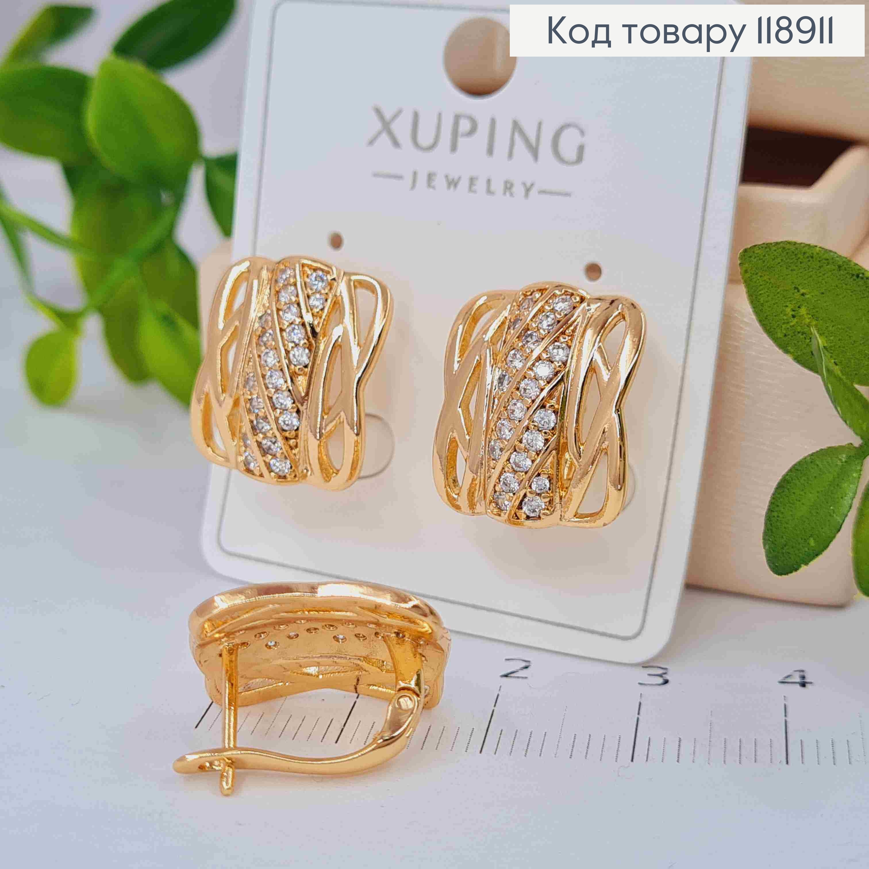 Серьги "Х" украшены Блестящими камешками, длина 1,6см, английская застежка, Xuping 18К. 110206 фото