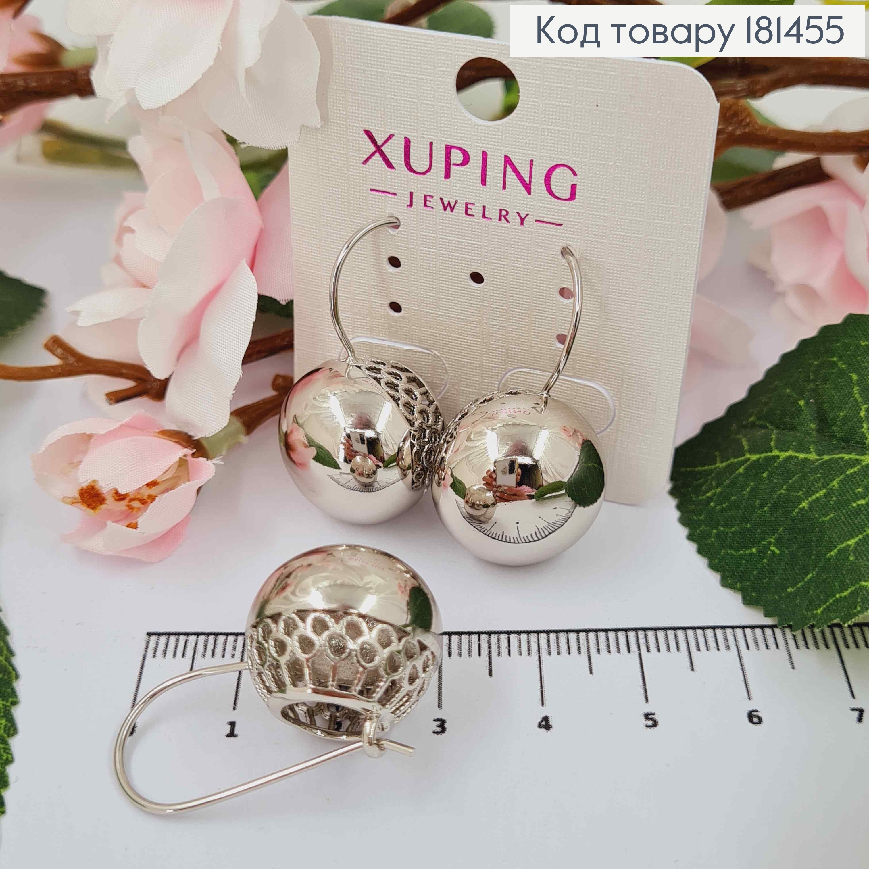 Серьги родованные крючки, большие шары, диаметр 1,9см, Xuping