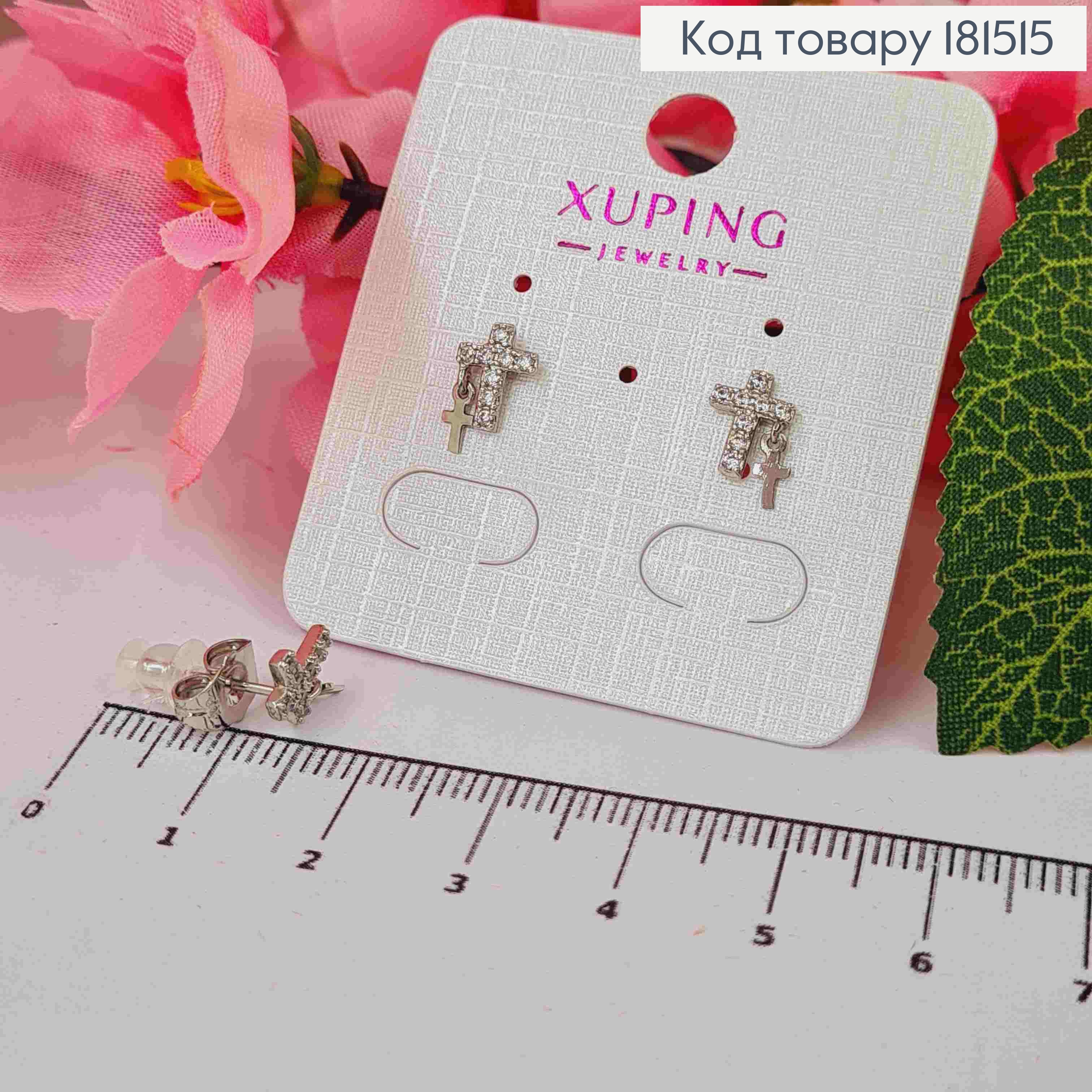 Серьги родованные гвозди, Крестики в камешках с подвесным крестиком, 8,5мм, Xuping