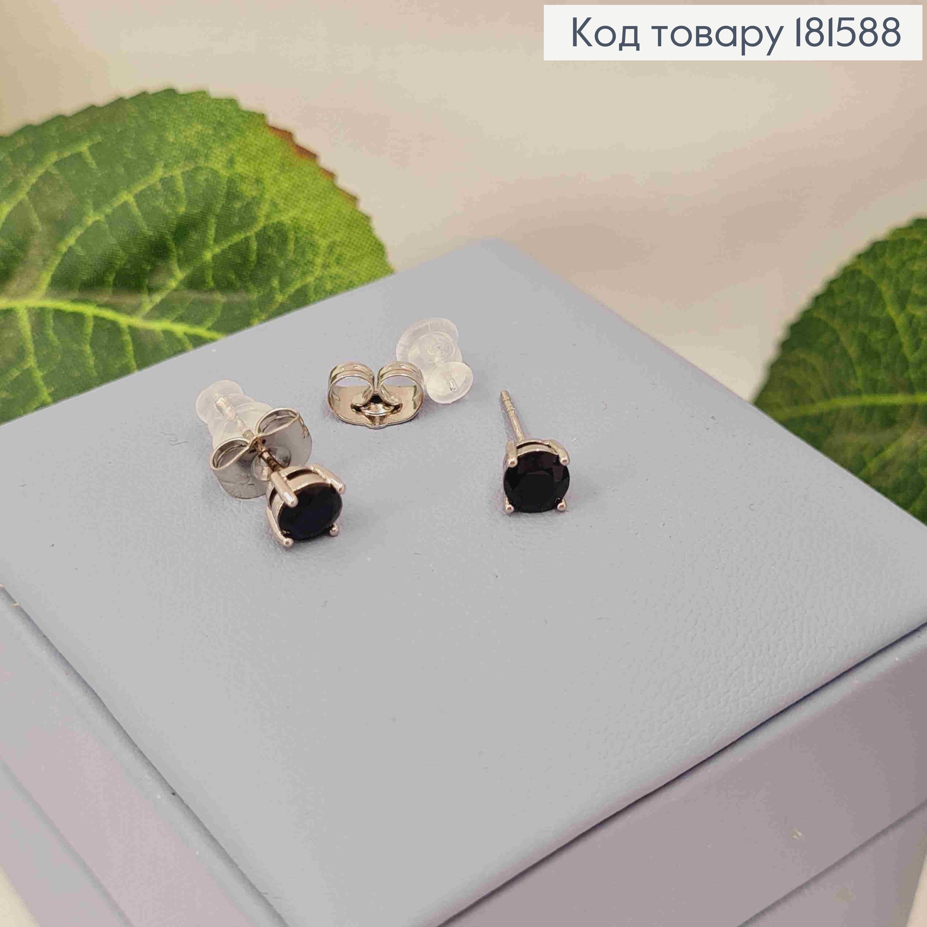 Серьги родованные гвозди с черным камешком, 5мм, Xuping