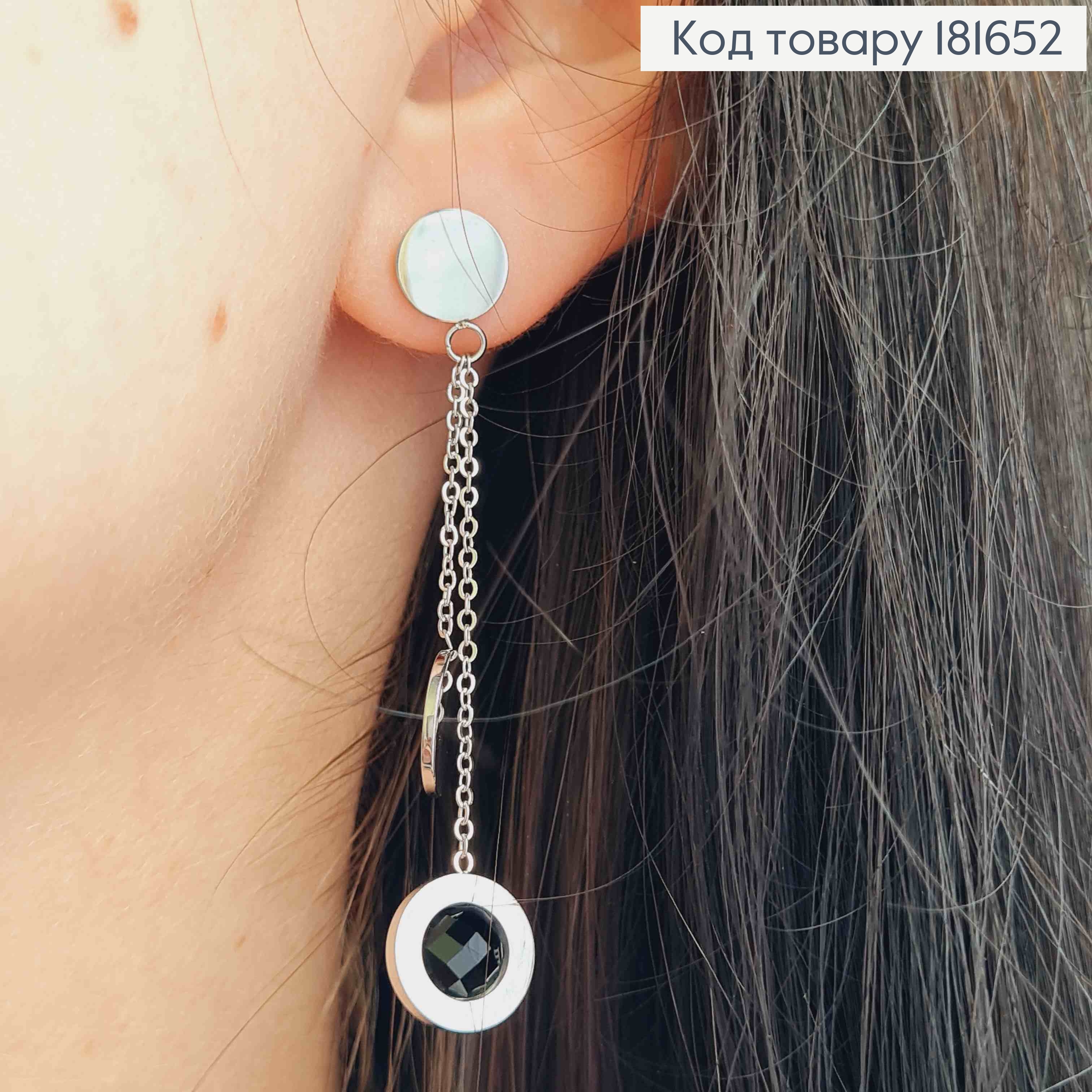 Серьги родованные гвоздики с подвеской "Римские часы" с Черным камешком, 5,8см, Xuping ТТМ