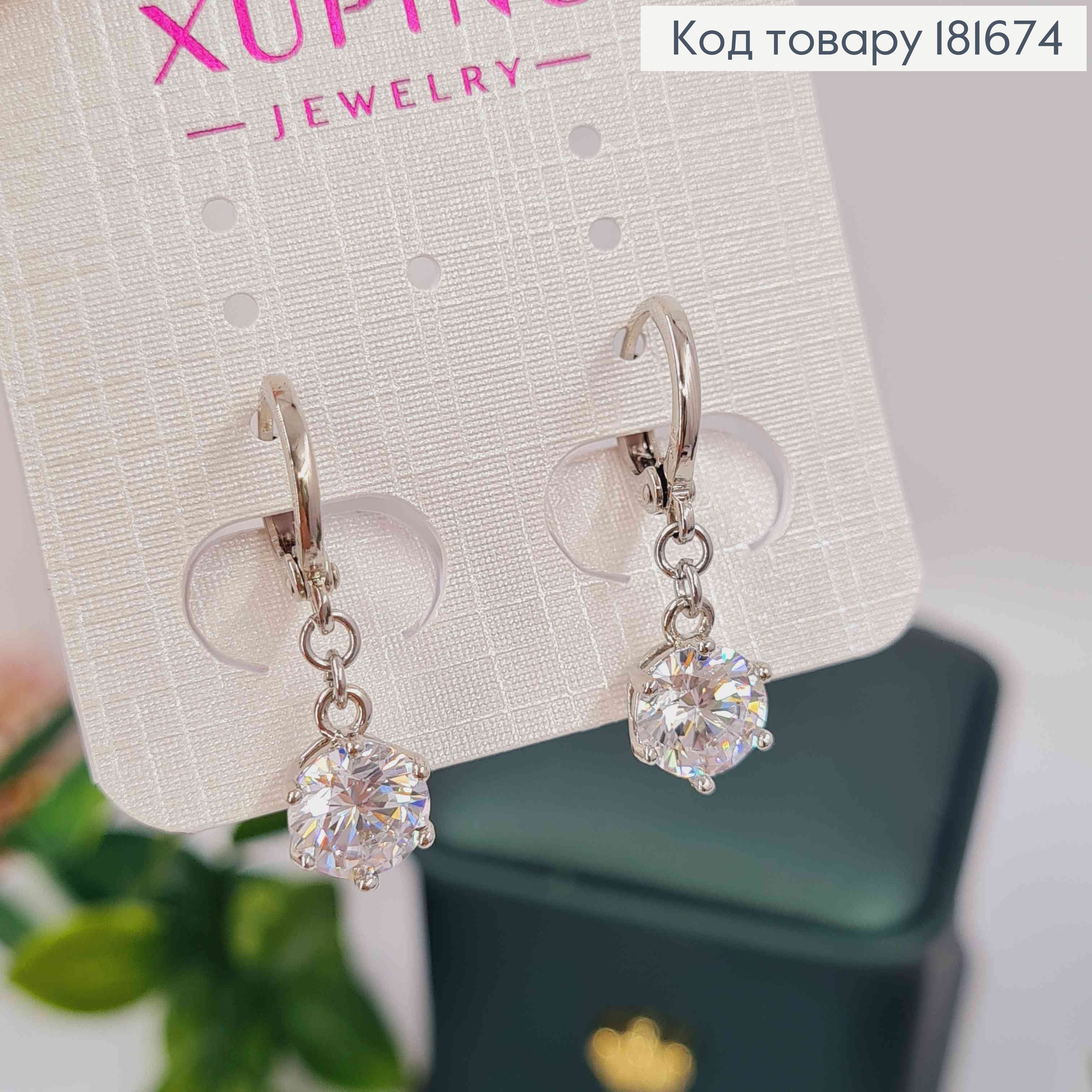 Серьги родованные "Блеск" украшены Блестящими камешками, 1,9см, английская застежка, Xuping 181961 фото