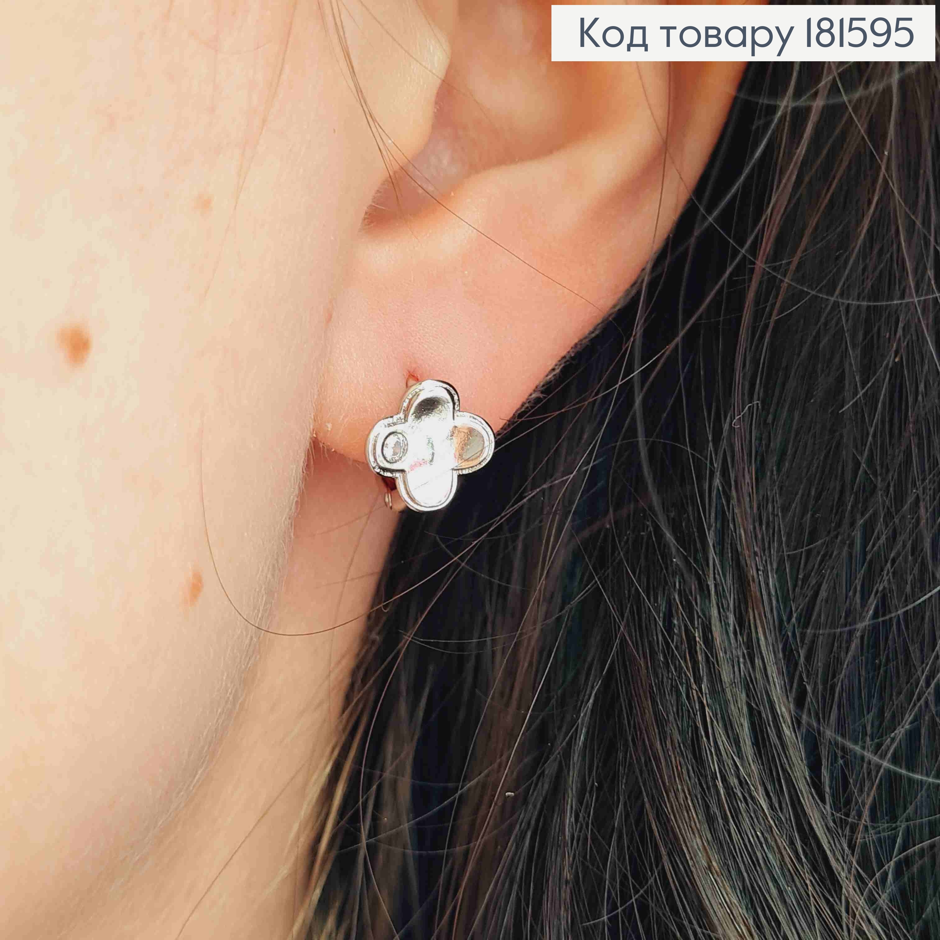 Серьги родованные кольца, "Четырехлистник" с Блестящим камешком, диаметр 1см, Xuping
