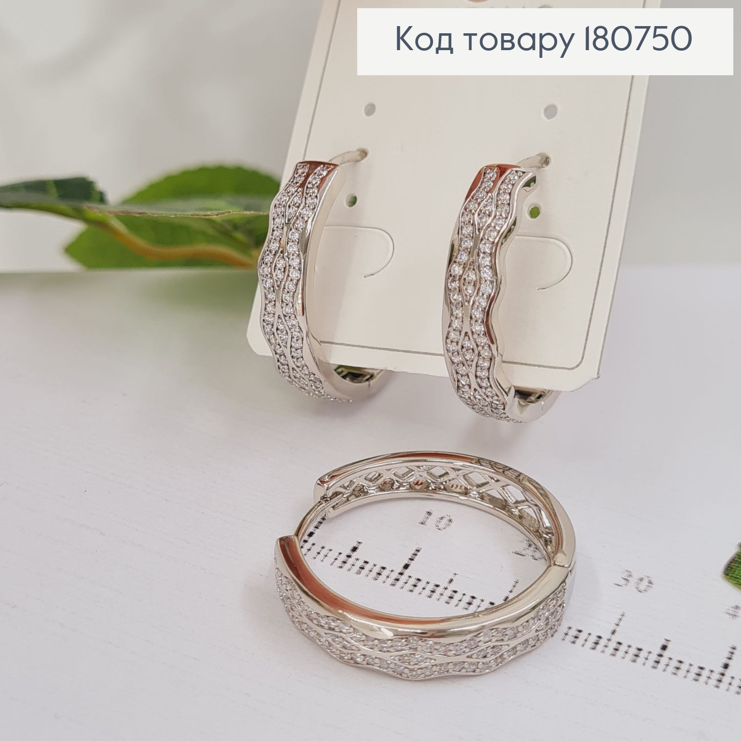 Сережки родованные кольца Волна с камнями, 2,5*0,6см, Xuping