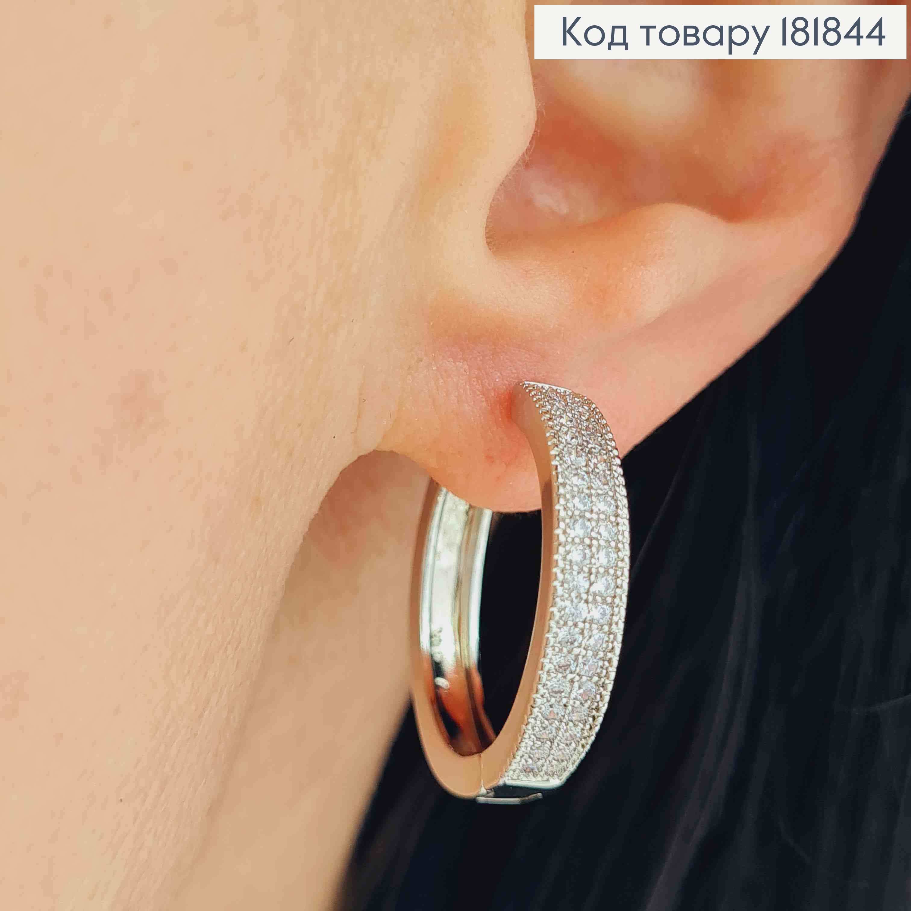 Серьги кольца украшены Блестящими камешками в два ряда, диаметр 2,4см, шир.4мм, XUPING