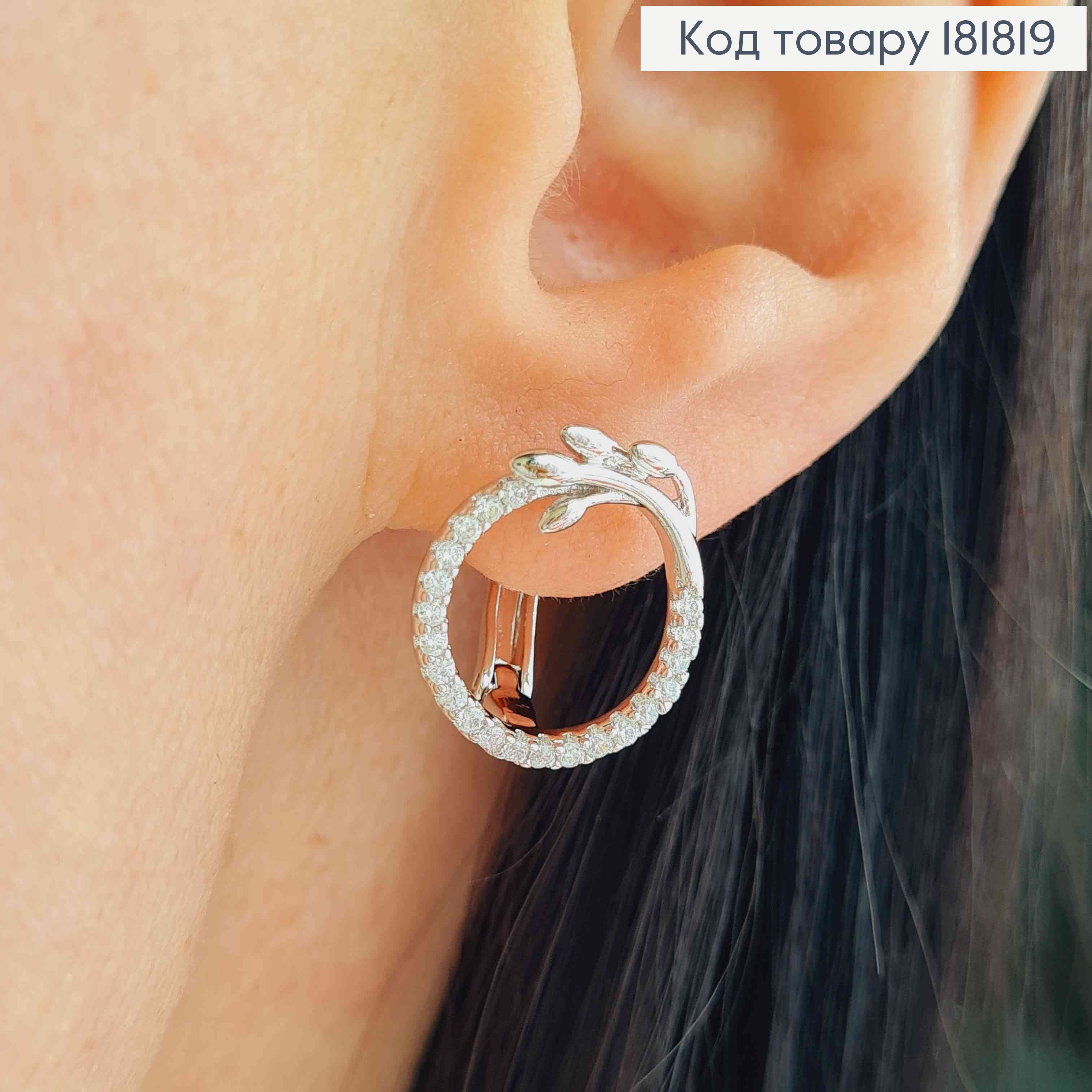 Серьги родованные "Веточка" на круге с Блестящими камешками, 1,6см, английская застежка, XUPING