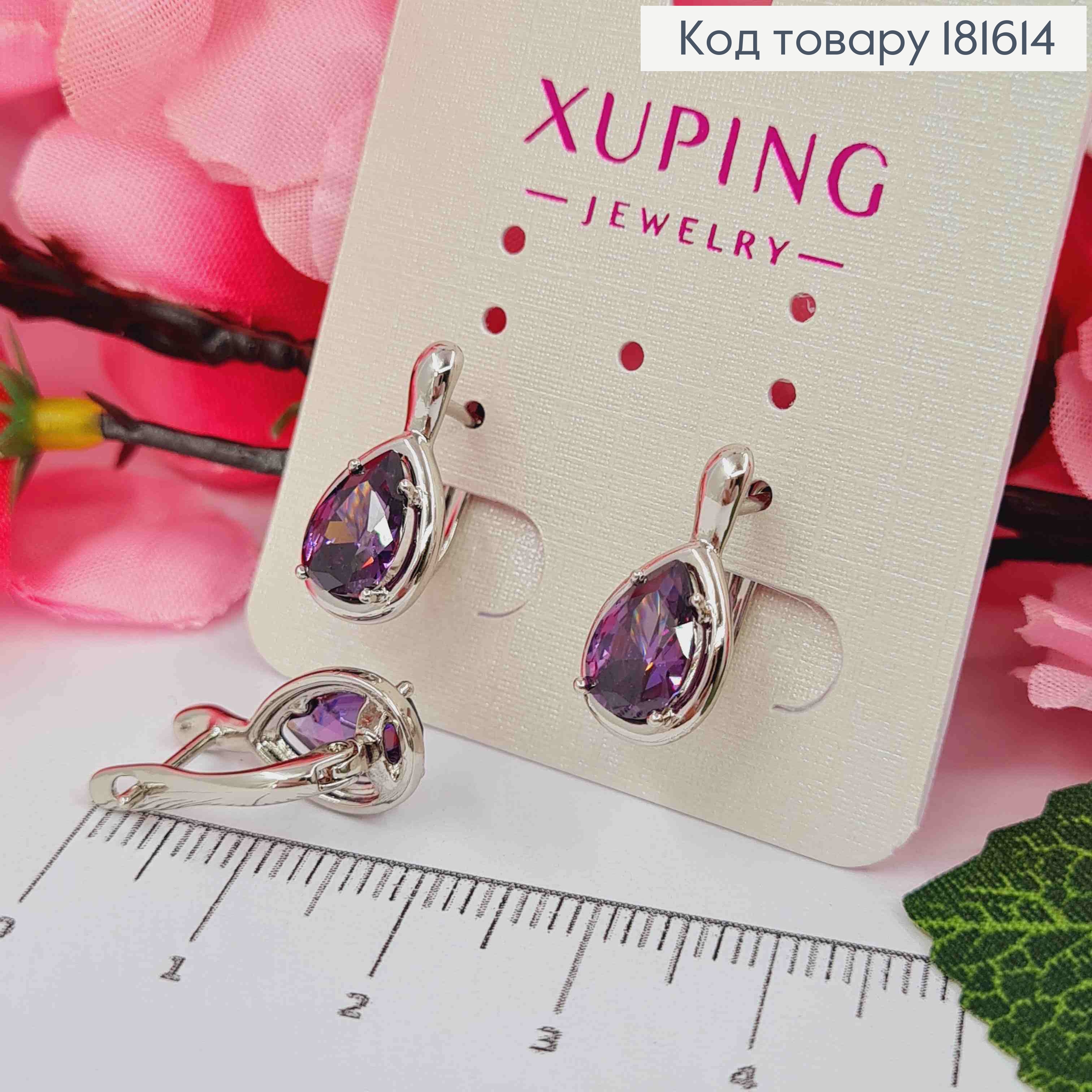 Серьги родованные "Капелька Надежды" с Фиолетовым камешком, 1,7см, английская застежка, Xuping
