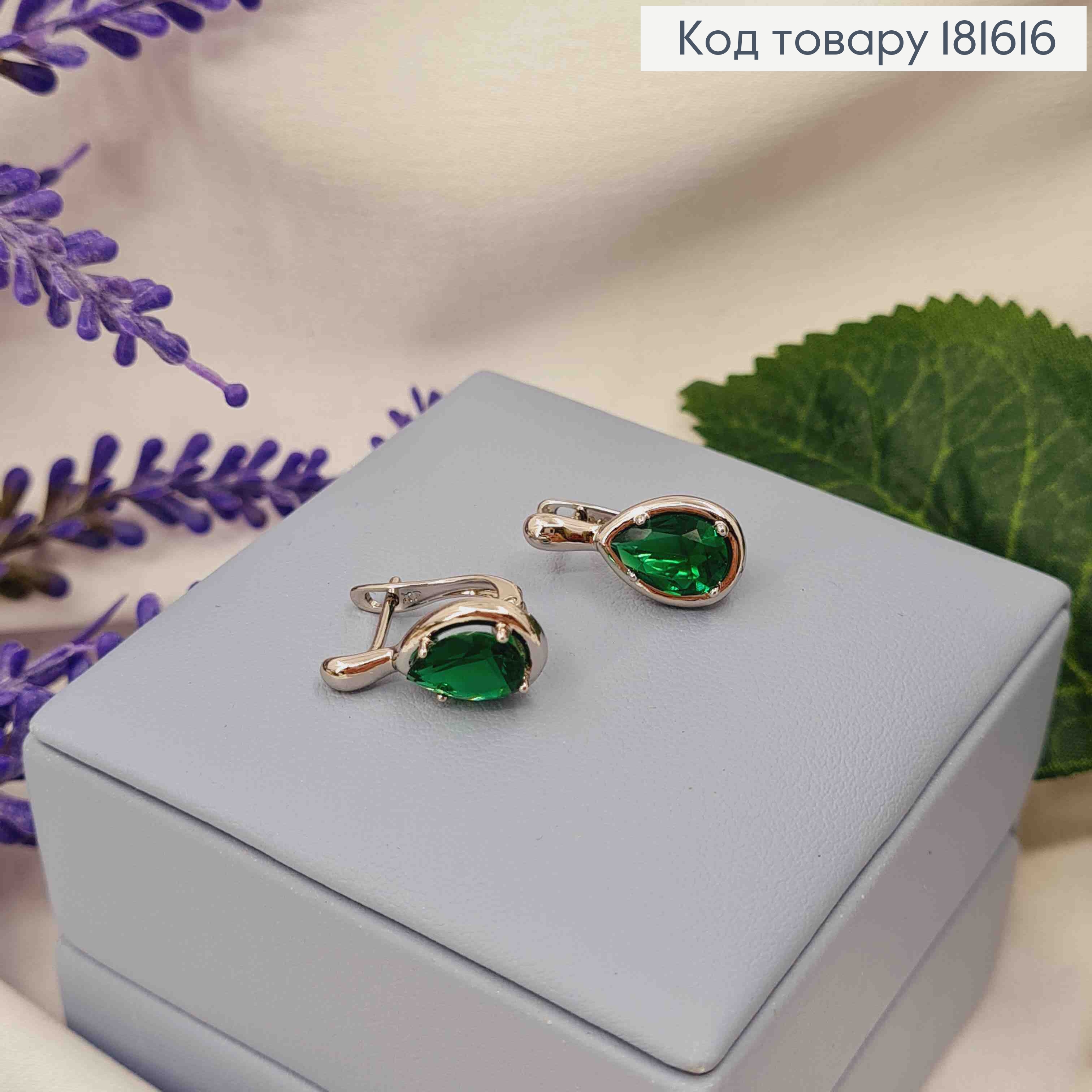 Серьги родованные "Капелька Надежды" с Зеленым камнем, 1,7см, английская застежка, Xuping