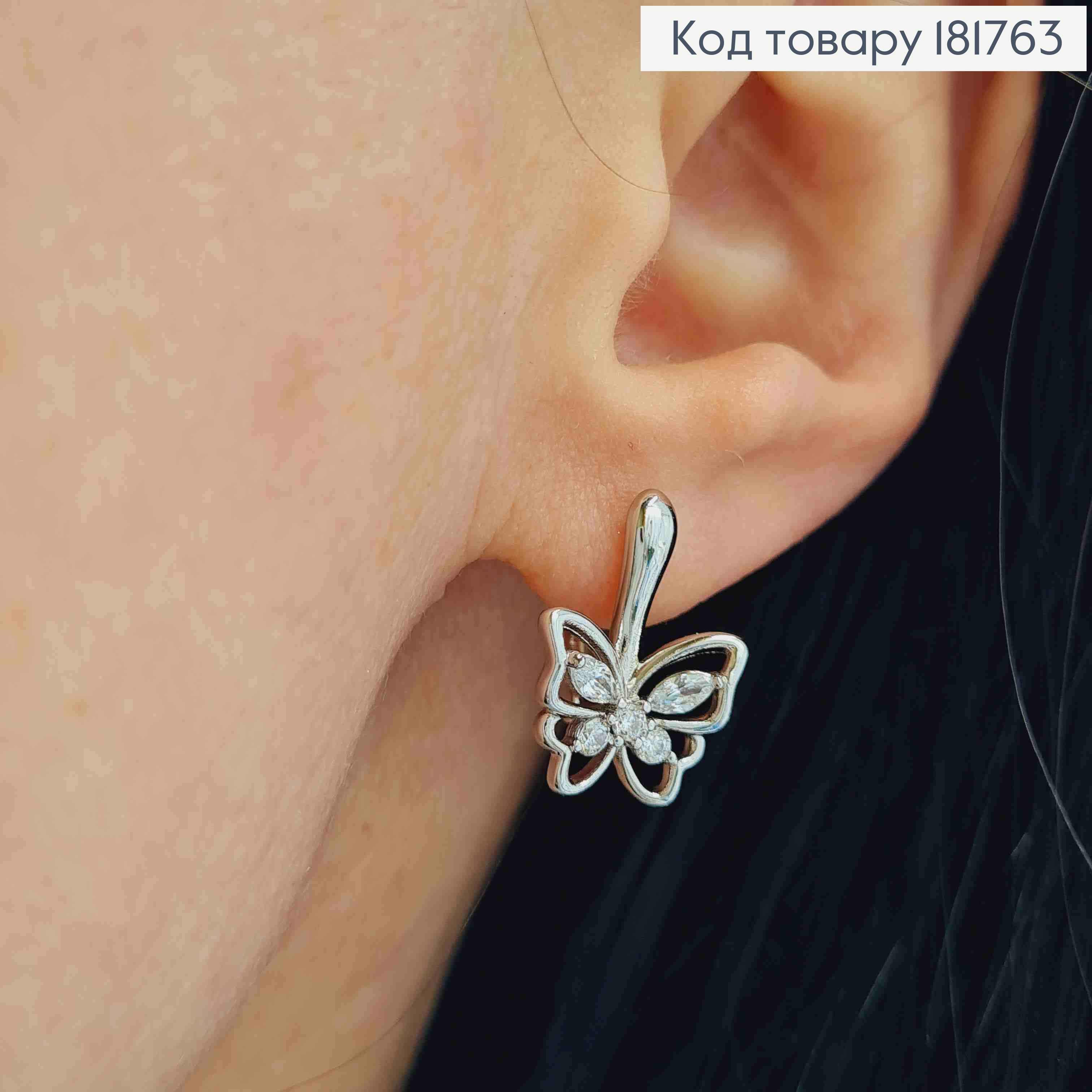 Серьги родованные "Бабочки" украшены Блестящими камешками, 1,7см, английская застежка, Xuping