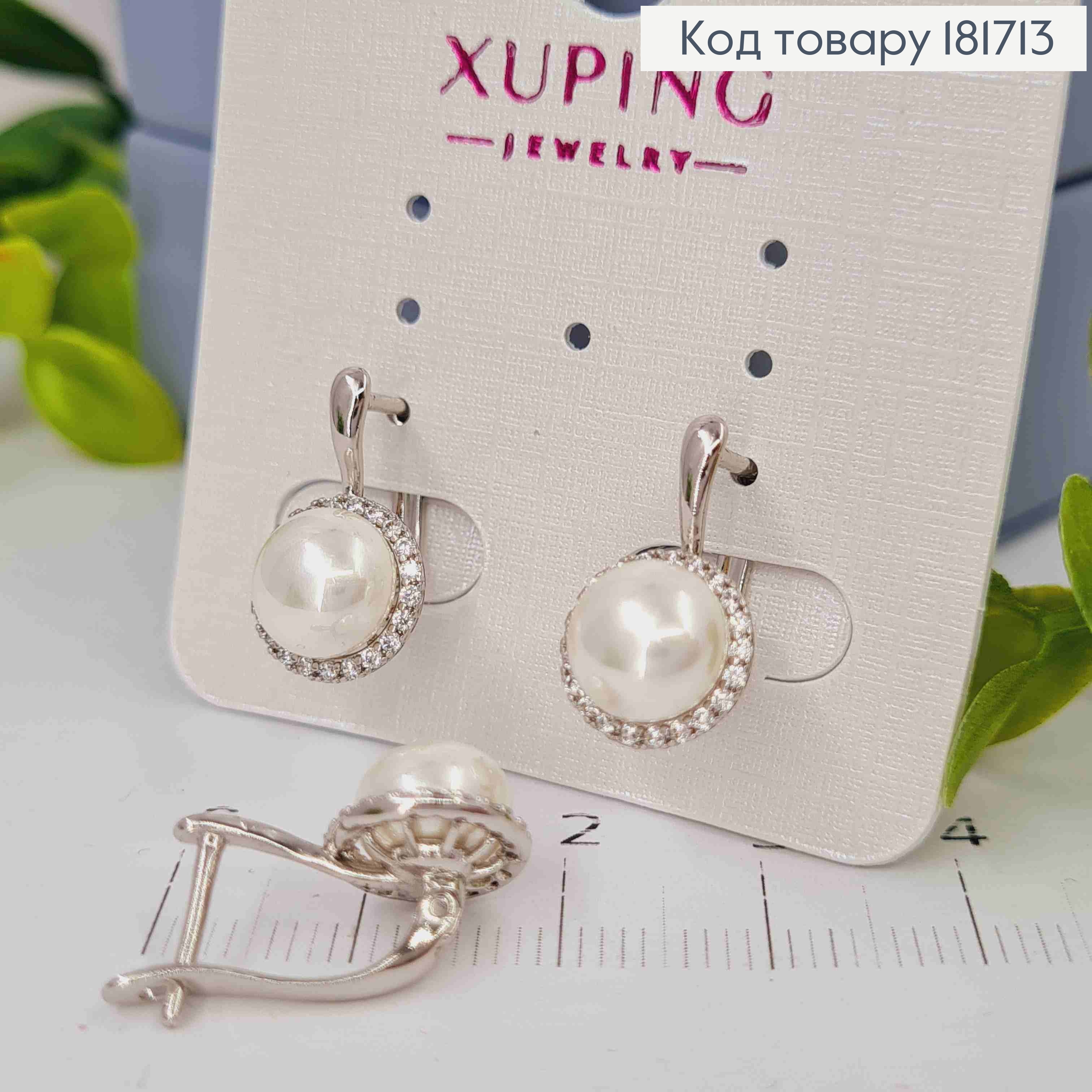 Серьги родованные гвоздики с блестящими камешками и жемчужиной, размером 1,1см, Xuping 181958 фото
