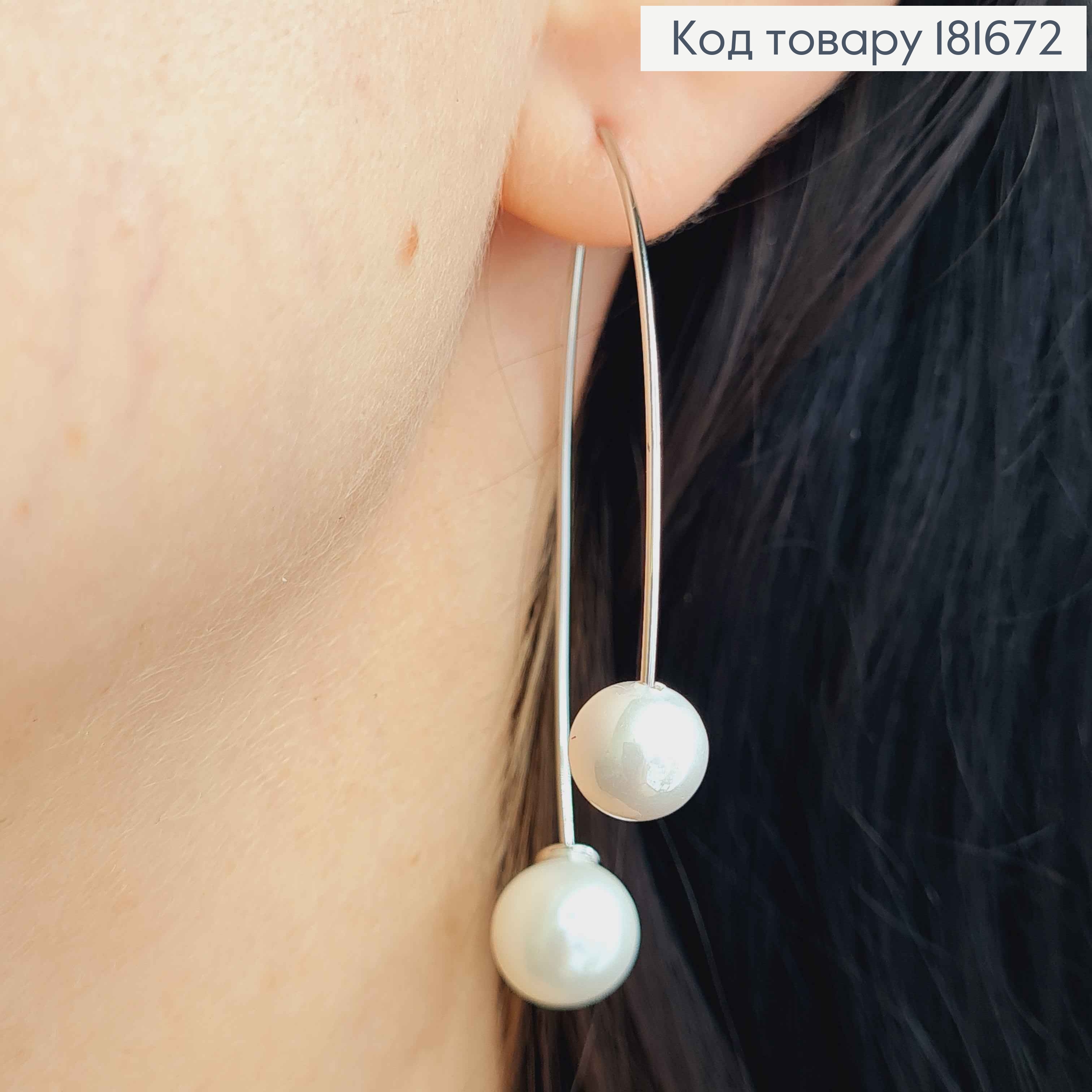 Серьги родованные протяжки с ЖЕМЧУЖИНАМИ, 5,2см, Xuping