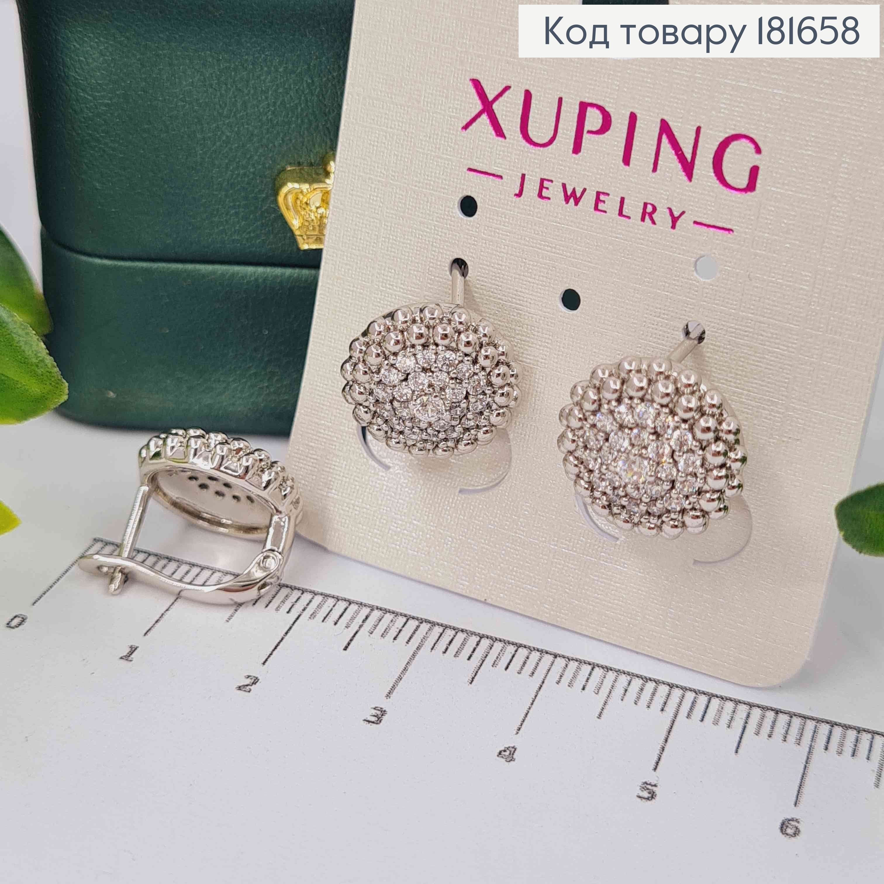Серьги родованные украшены Блестящими камешками, 2см, английская застежка, Xuping 181960 фото
