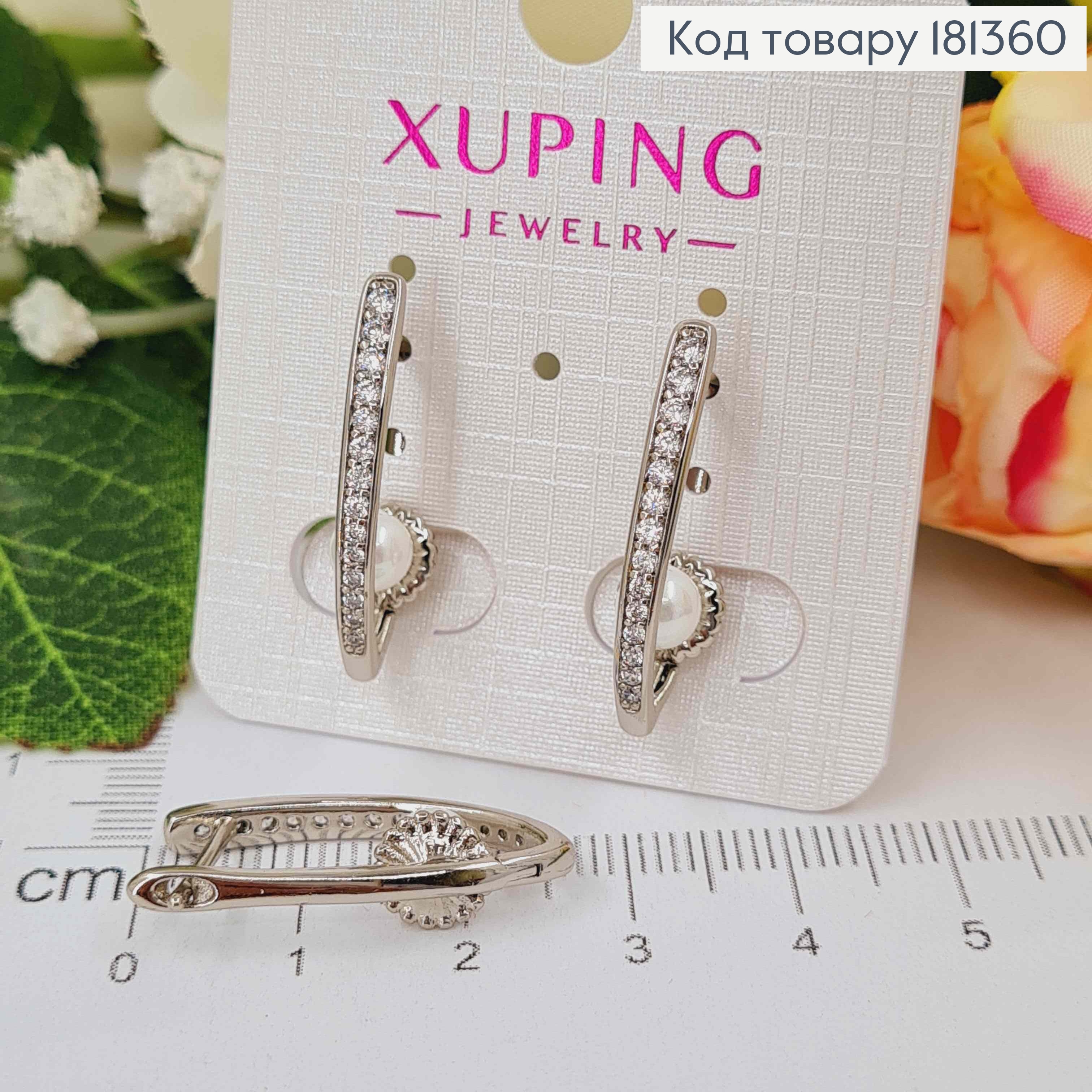 Сережки родованные, Стрелы с жемчужиной в камешках, 2,5см, англ. зам. Xuping
