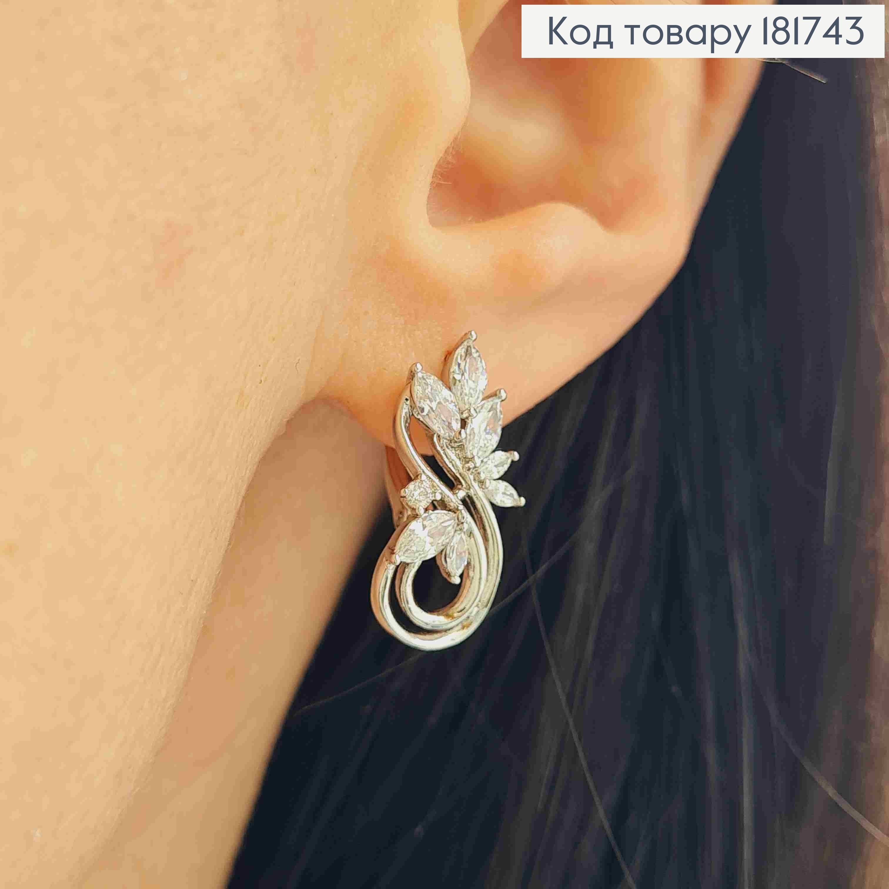 Серьги родованные "Блеск" украшены Блестящими камешками, 1,9см, английская застежка, Xuping 181961 фото