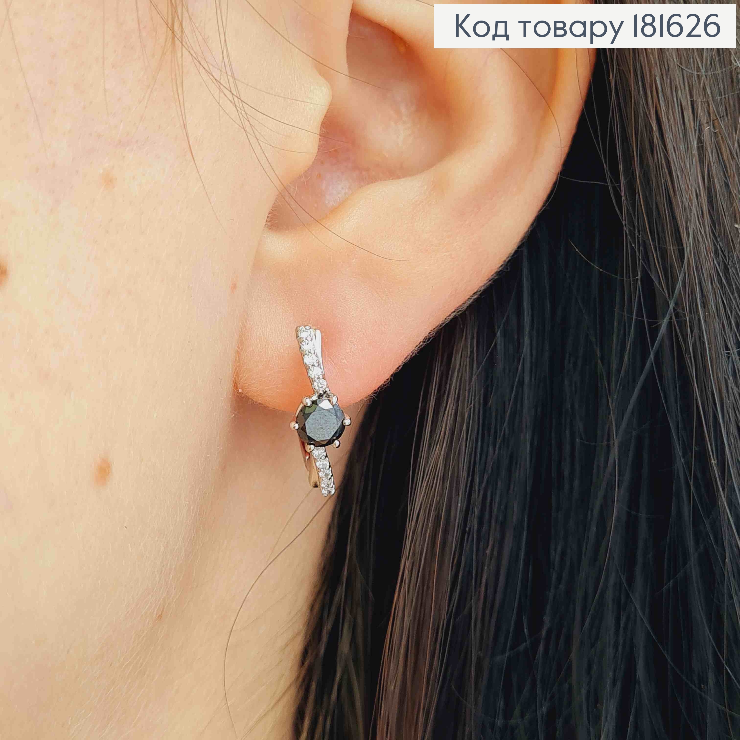Серьги родованные с черным камнем,1,7см, англ. застежка XUPING