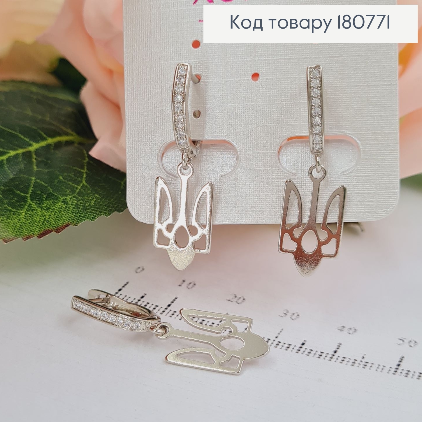 Серьги гвоздики родированые  Герб ТРИЗУБ  с цепочкою, Xuping TTM  180630 фото