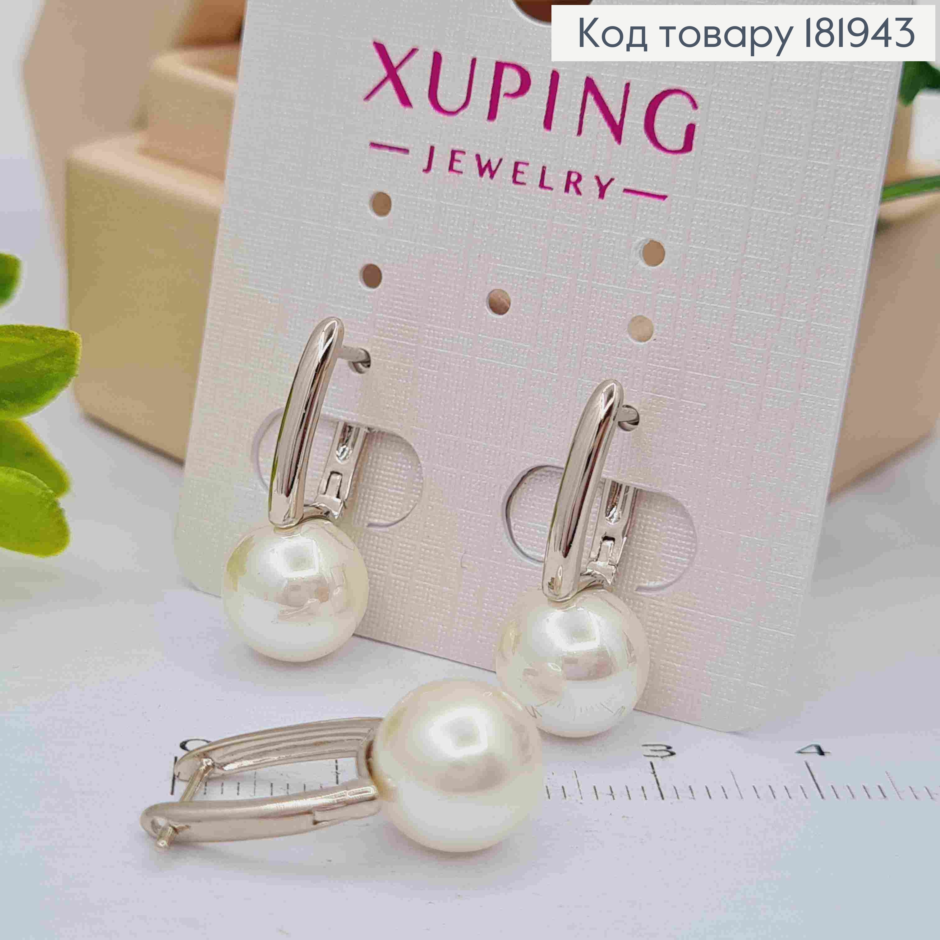 Серьги родованные с жемчужиной (1см), дл. 2,1см, английская застежка, Xuping