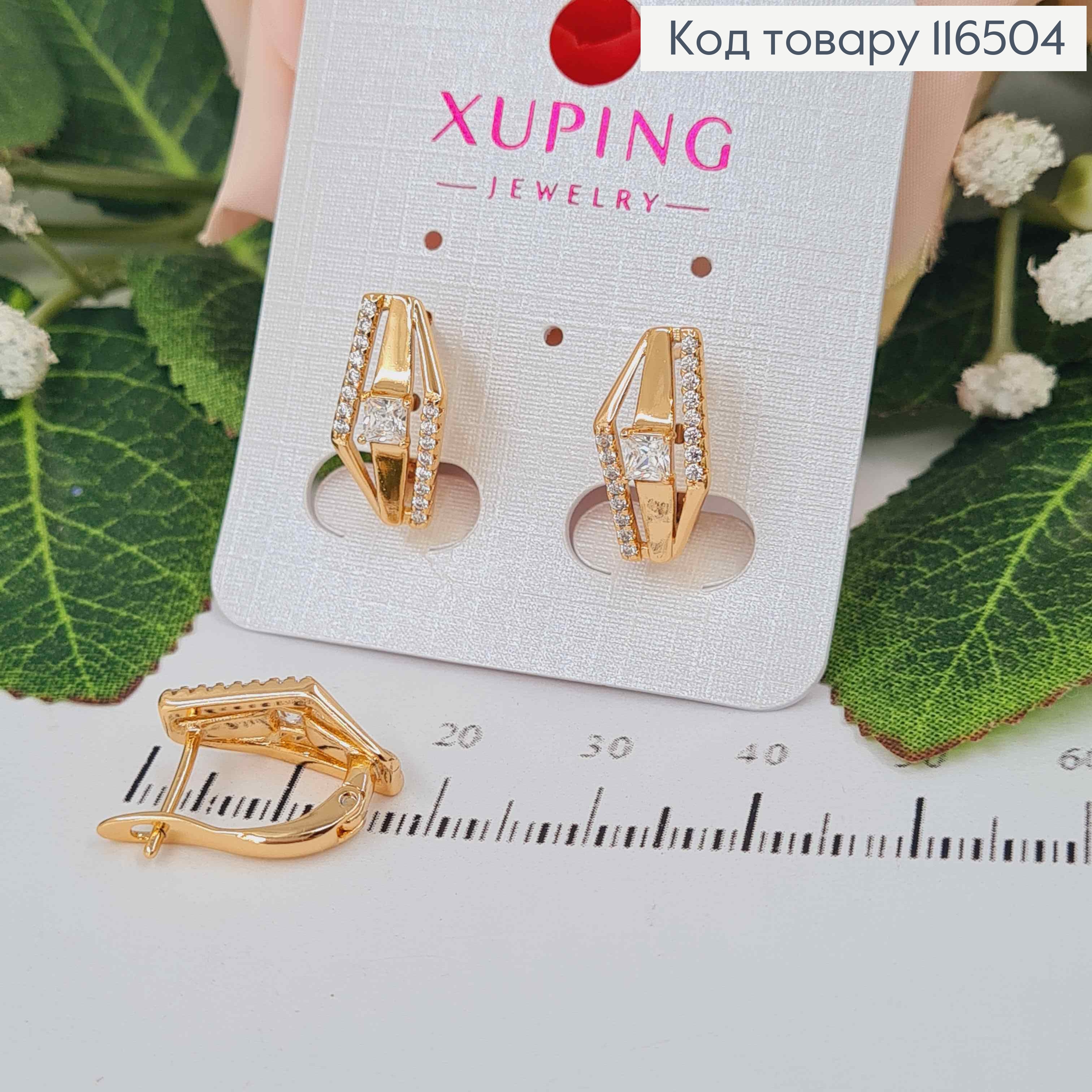 Серьги ромбики, с камешком, 1,7см, англ. зам, Xuping 18К