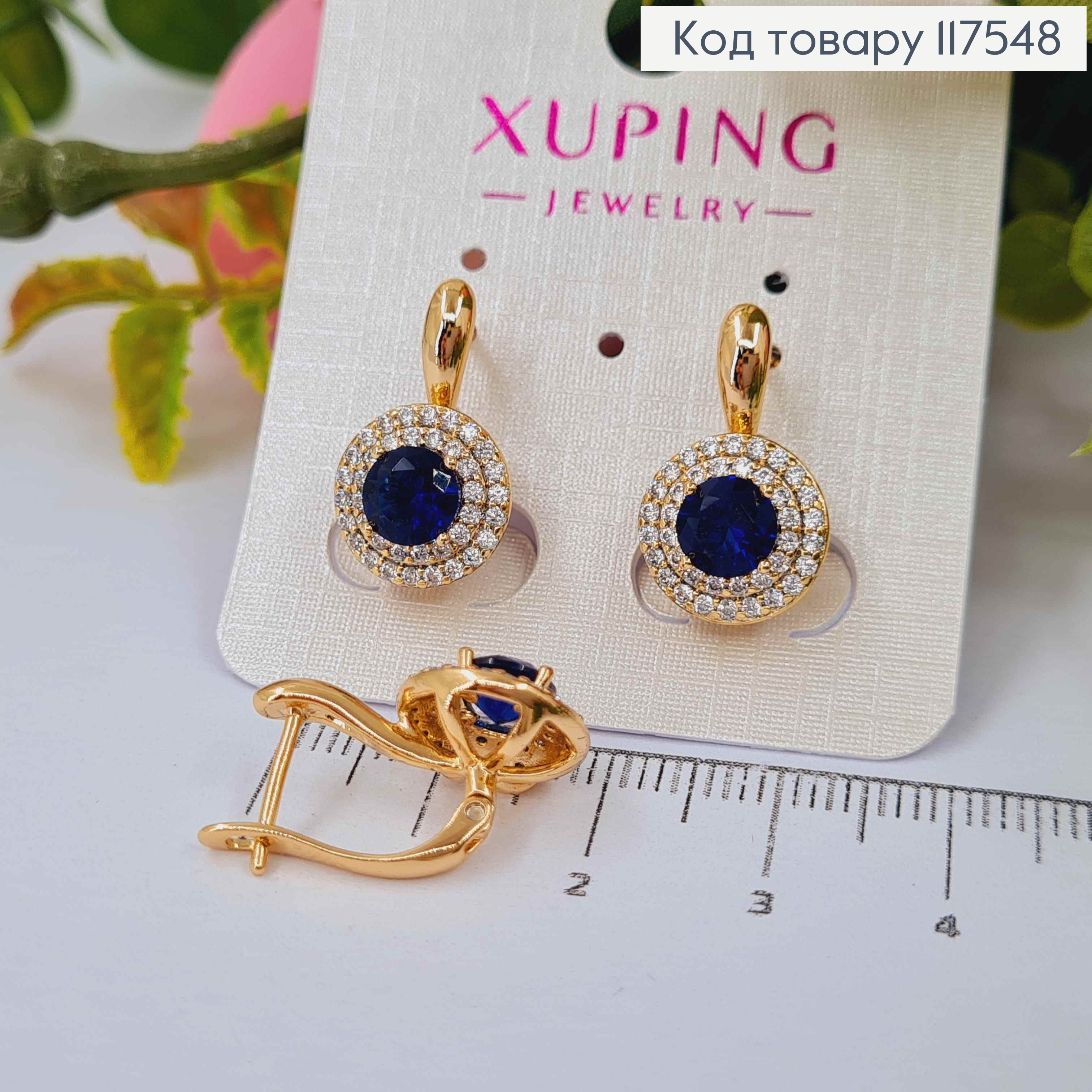 Серьги "Сияние Ночи", с Темно-Синим камнем в оправе из камней,1,9см, англ. зам., XUPING 18K