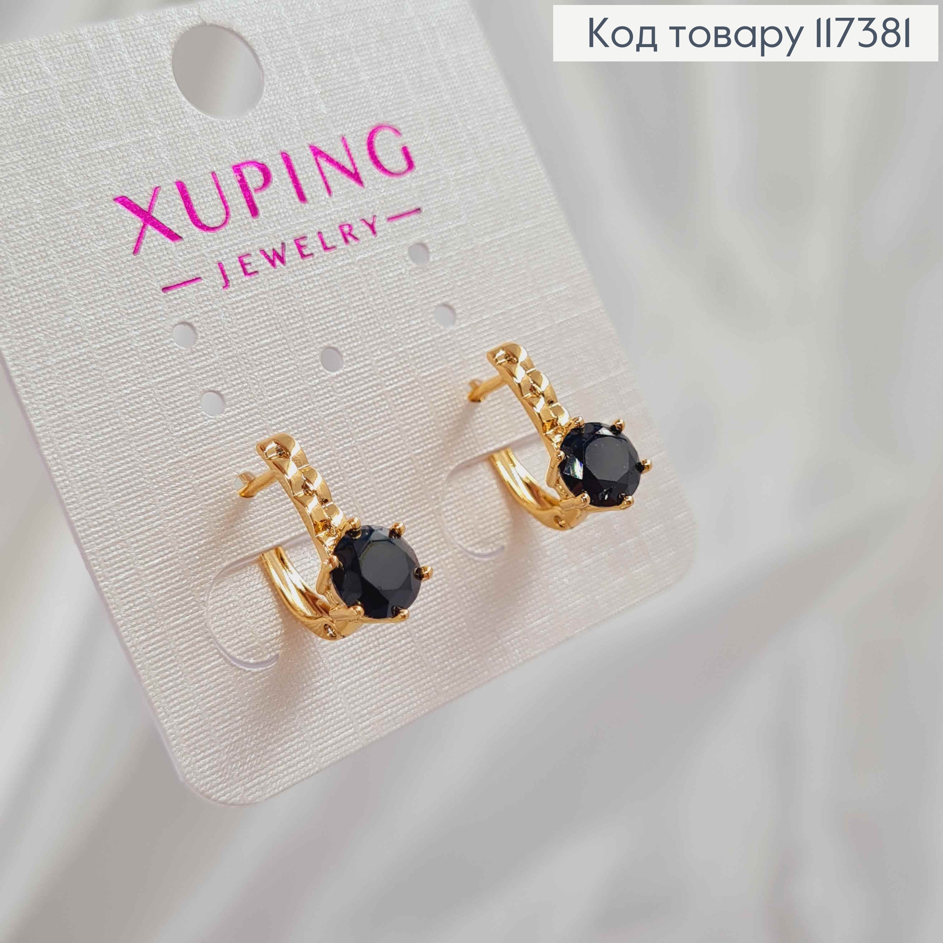 Серьги "Сияние" с ярким черным камнем, длина 1,4см, англ застежка, XUPING 18K