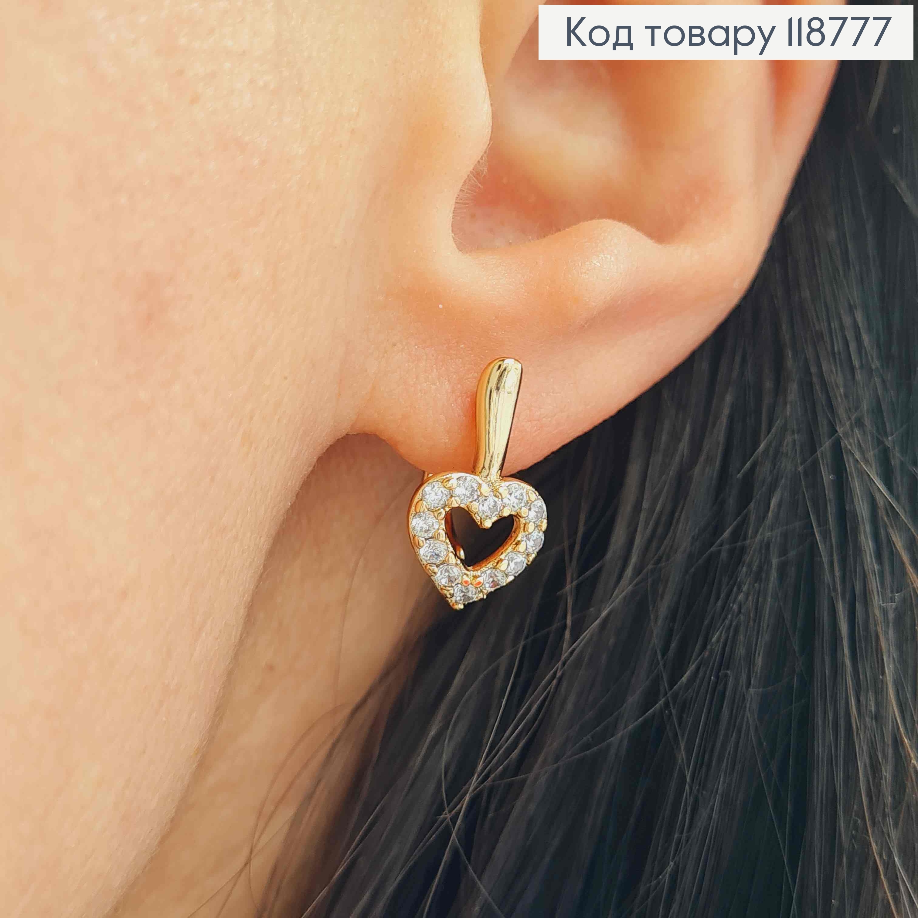 Серьги "Сердце" с Блестящими камешками, 1,6см, английская застежка, XUPING 18K