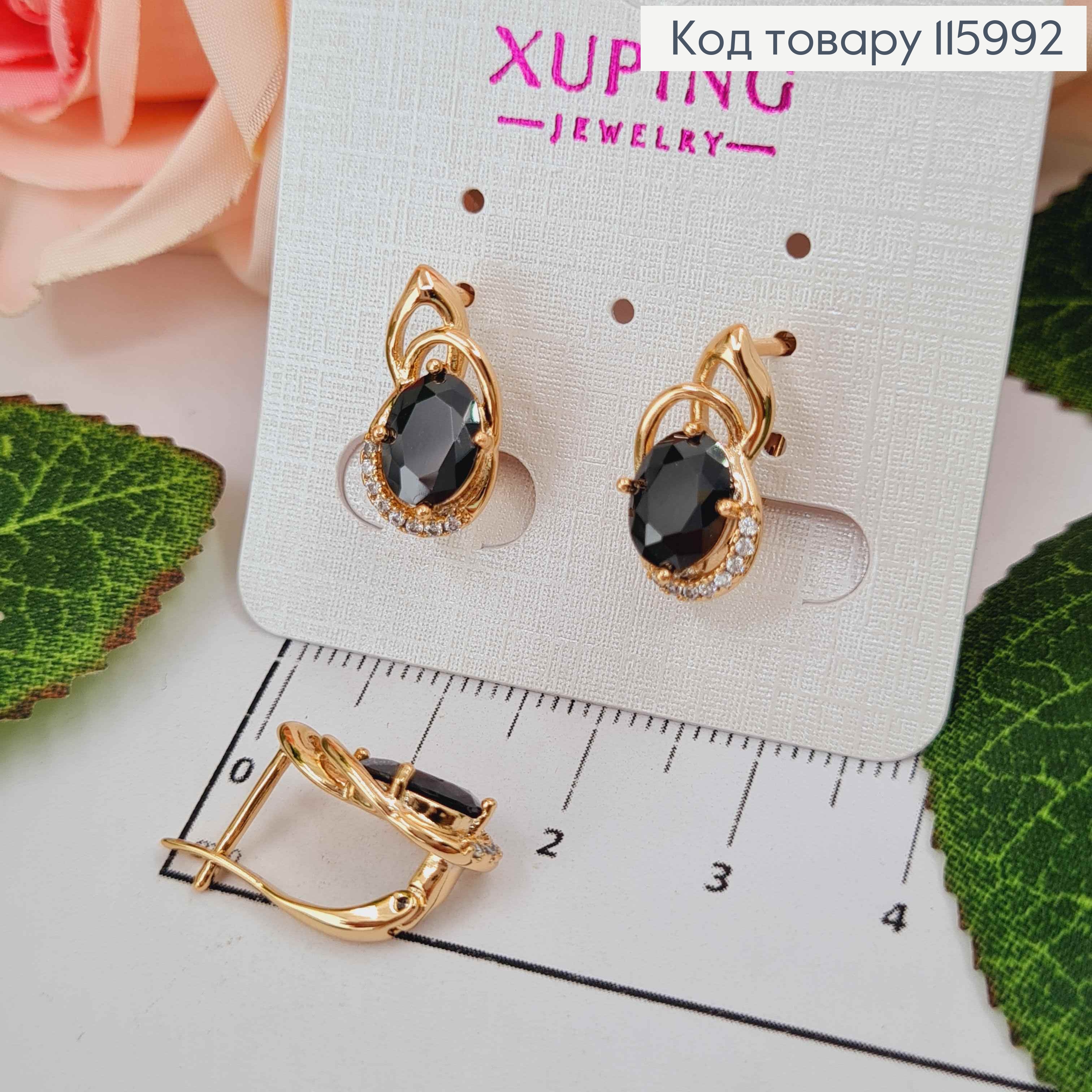Серьги, "Симфония души" с Черным камешком, 1,6см,англ. застежка Xuping 18K