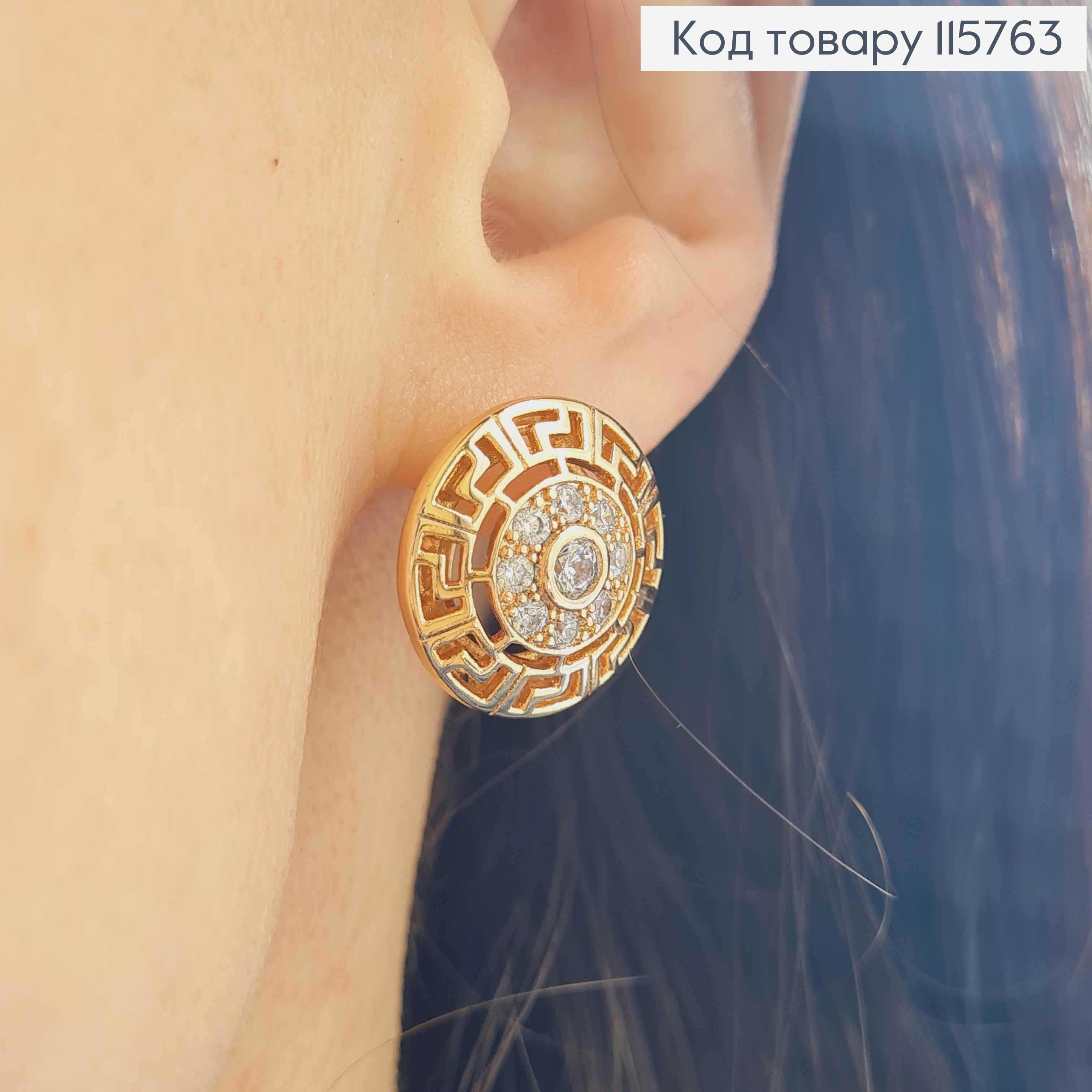 Серьги Щит Версаче, с камешками, англ. зам. 2см. Xuping 18K