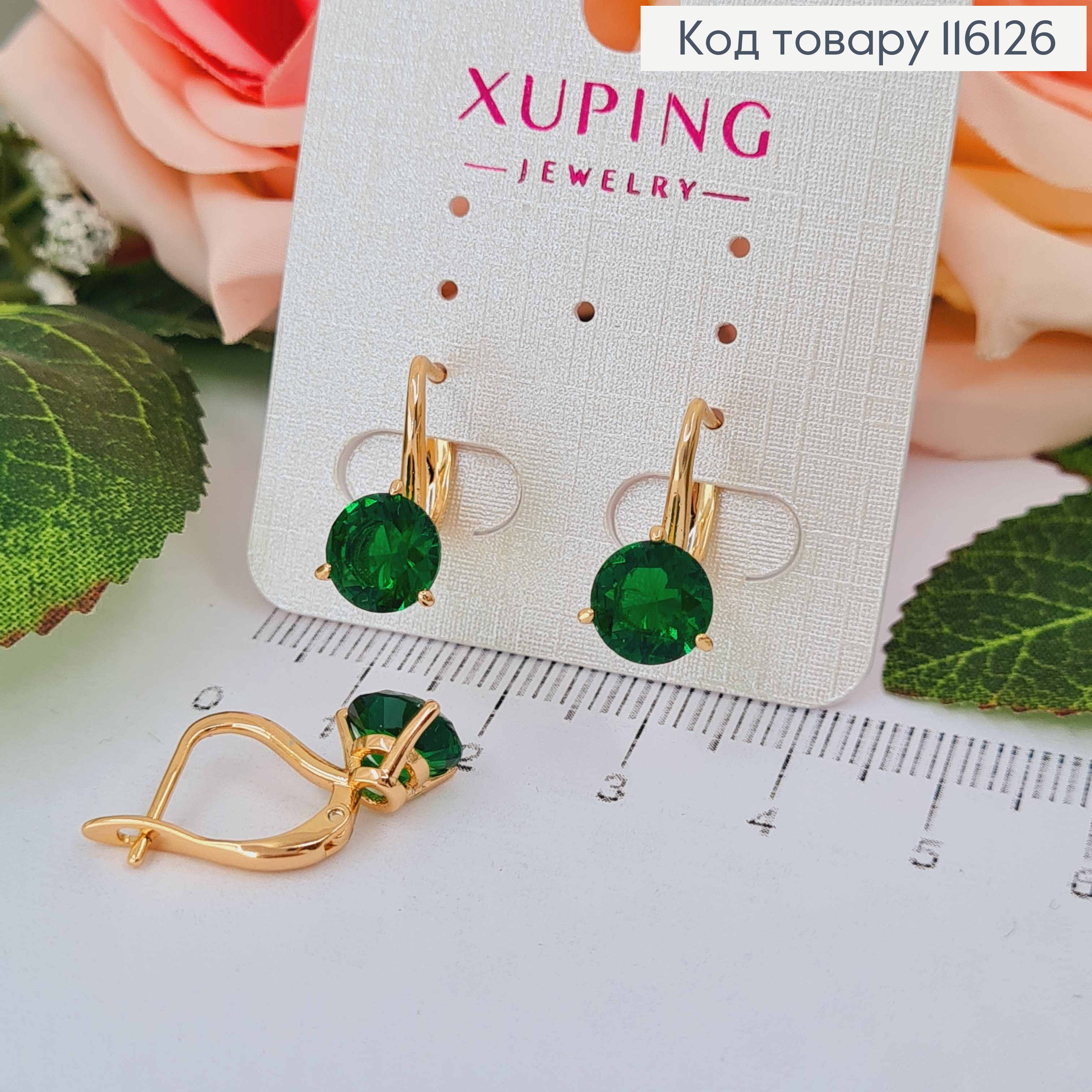 Серьги, "Софи" с Зеленым камнем, 2 см, англ. застежка, Xuping 18К
