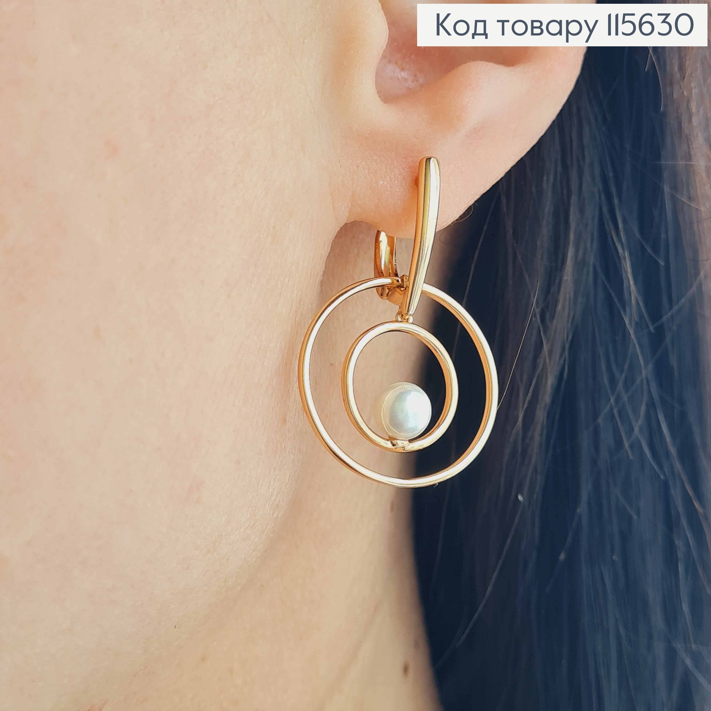 Серьги "Солнечная система" с двумя колечками и жемчужиной, 2,5см, англ. зам. Xuping 18K